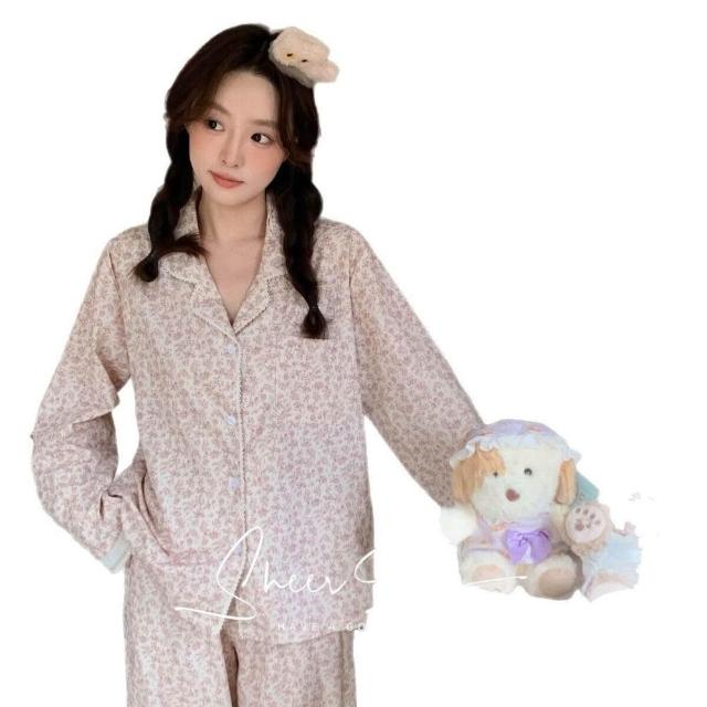新品 含發票 新款秋季睡衣女水洗棉麻韓版花邊款女士家居服長袖長褲印象巴黎