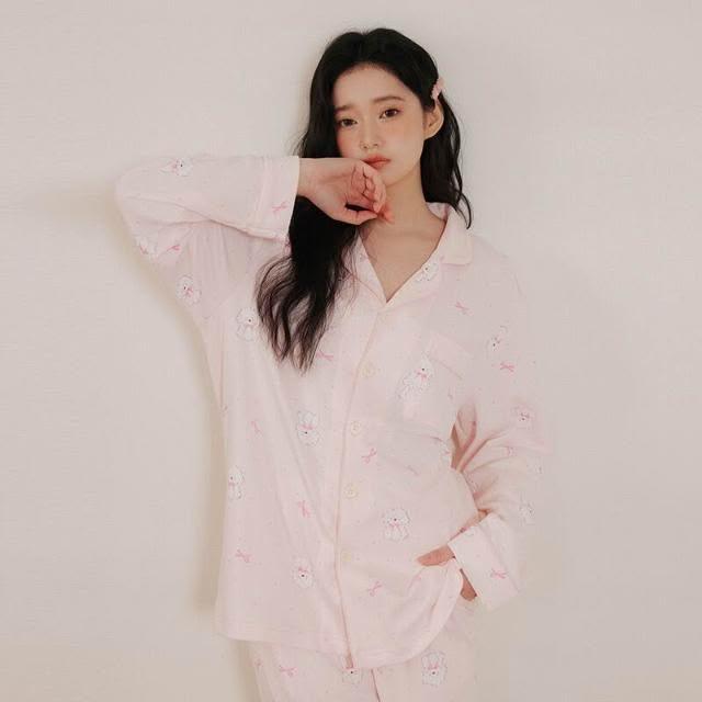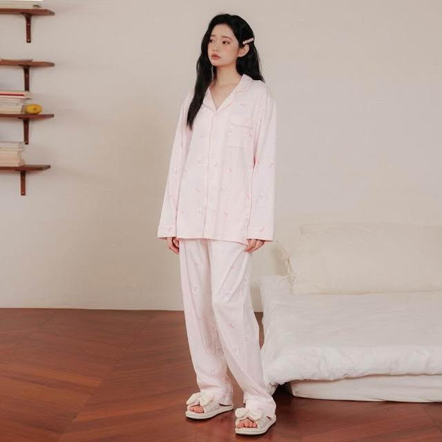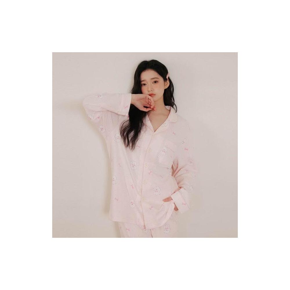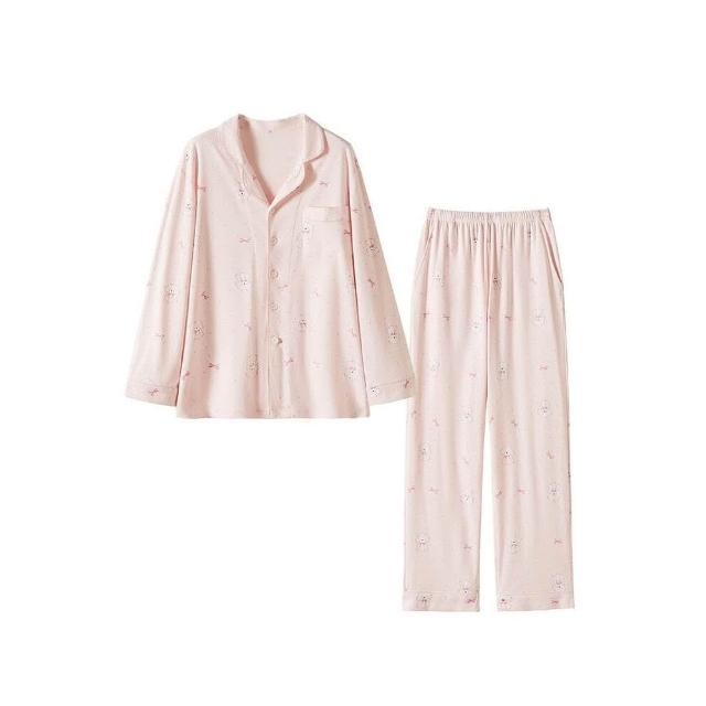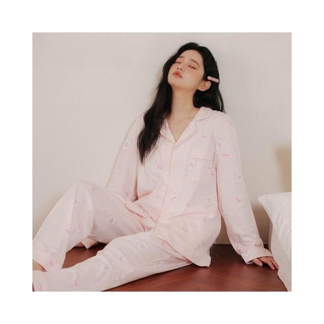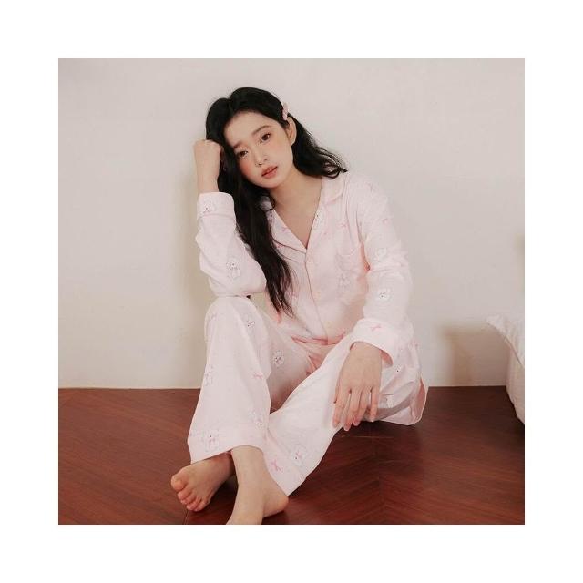 新品 含發票 春季新款可愛粉色小狗狗A類純棉睡衣少女抗菌防螨長袖家居服套裝