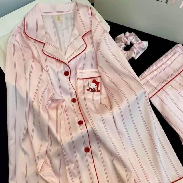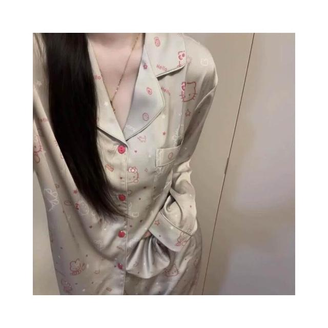 新品 含發票 春秋季新款甜美可愛少女風薄款冰雪絲輕奢女家居服睡衣批發套裝
