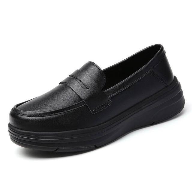 新品 含發票 牛皮真皮黑色工作皮鞋女鞋軟底軟面久站不累職業單鞋平底舒適上班