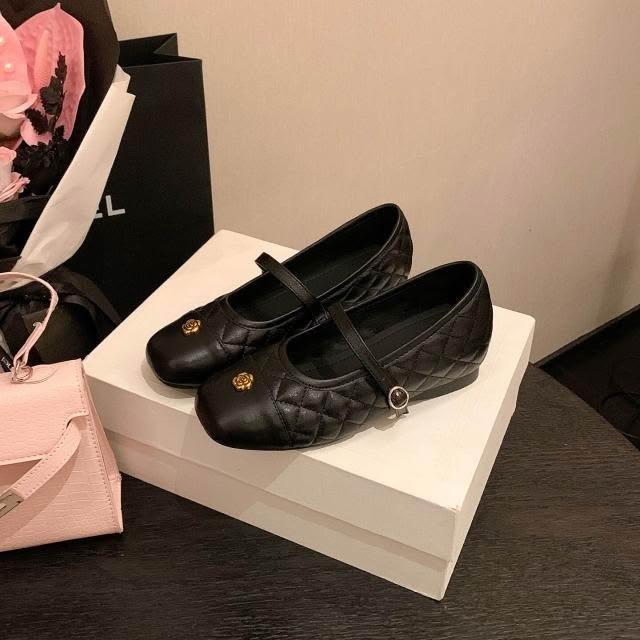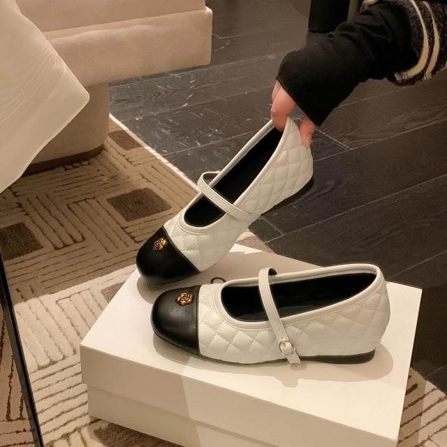 新品 含發票 小香風山茶花菱格瑪麗珍女鞋2026年新款氣質淺口一字帶芭蕾風單鞋