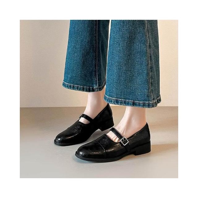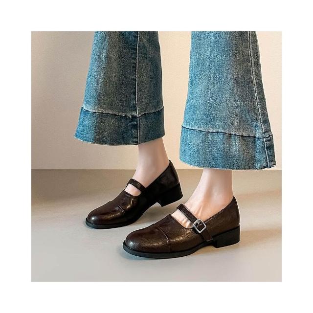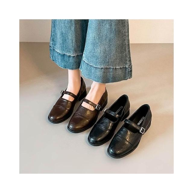 新品 含發票 法式復古真皮粗跟通勤小皮鞋女春秋新款軟皮厚底一字帶瑪麗珍單鞋