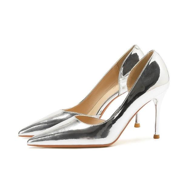 新品 含發票 966-A5 韓版仙女風漆皮高跟鞋女2025春季新款純色尖頭細跟單鞋女
