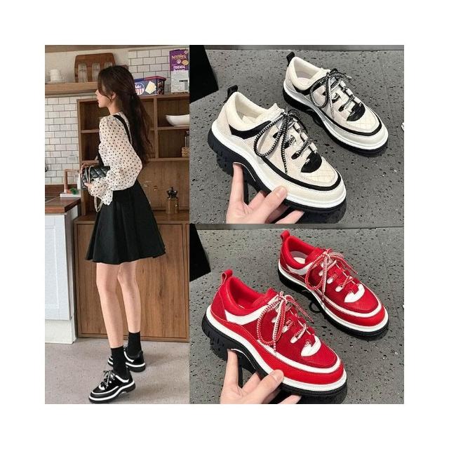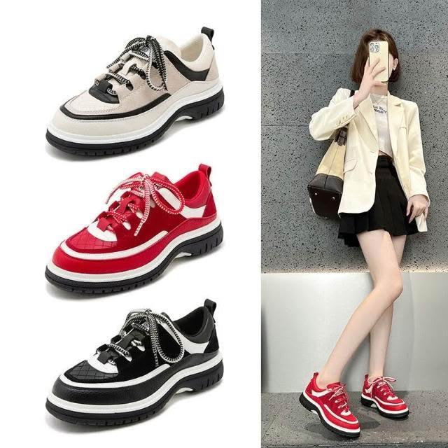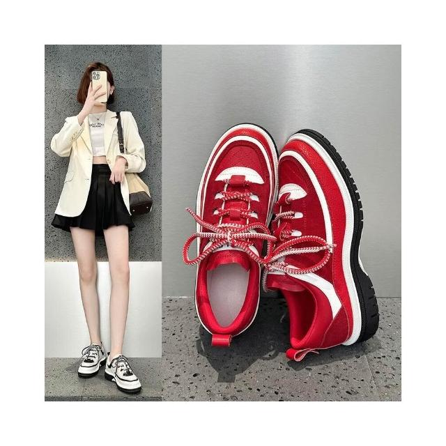 新品 含發票 隱形內增高7CM新款小香風厚底熊貓厚底運動鞋女時尚休閑學生鞋女