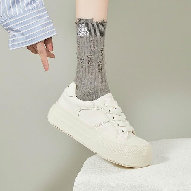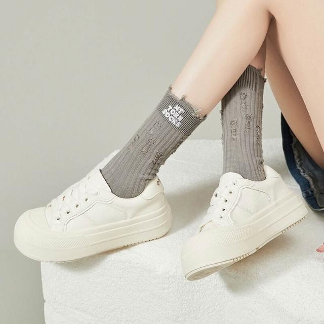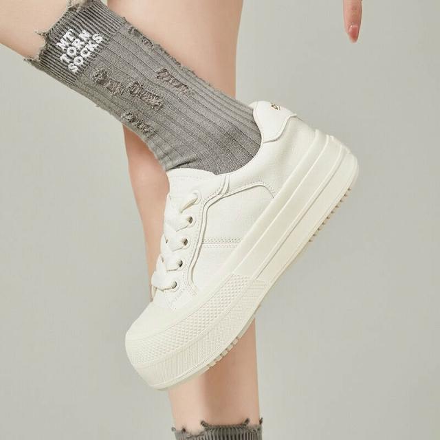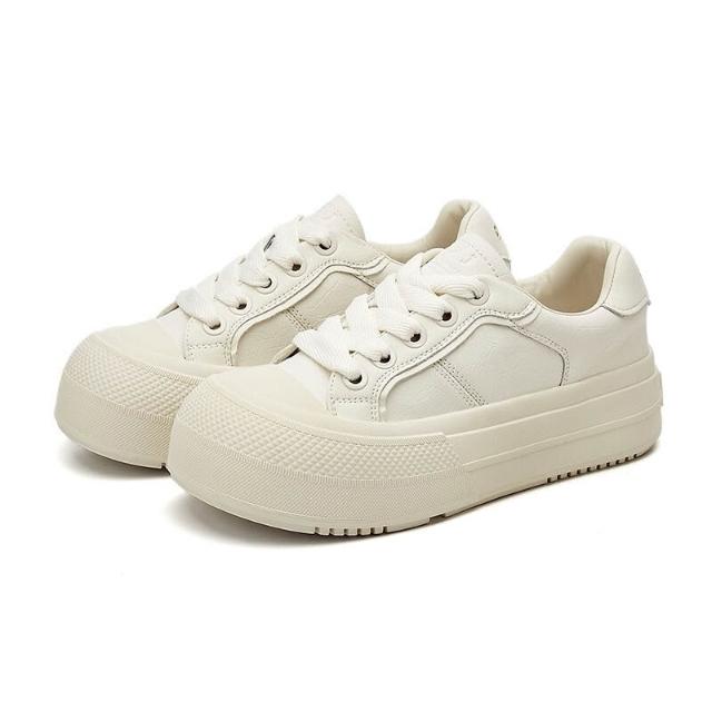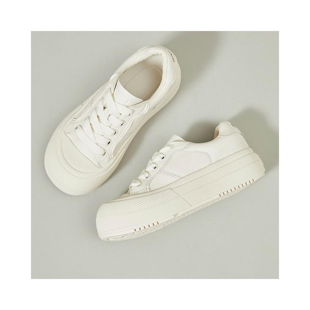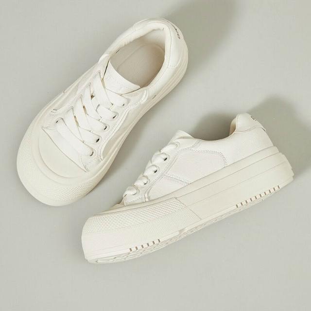 新品 含發票 2025鉑思春夏新款松糕底圓頭休閑鞋增高女鞋百搭系帶小白板鞋女