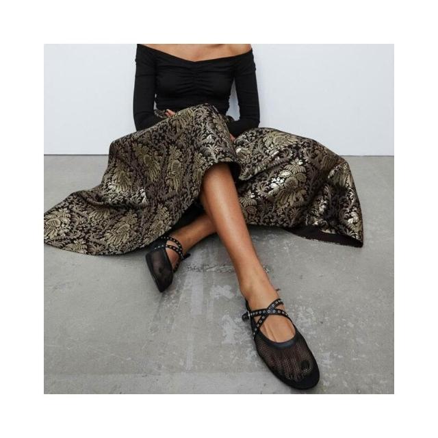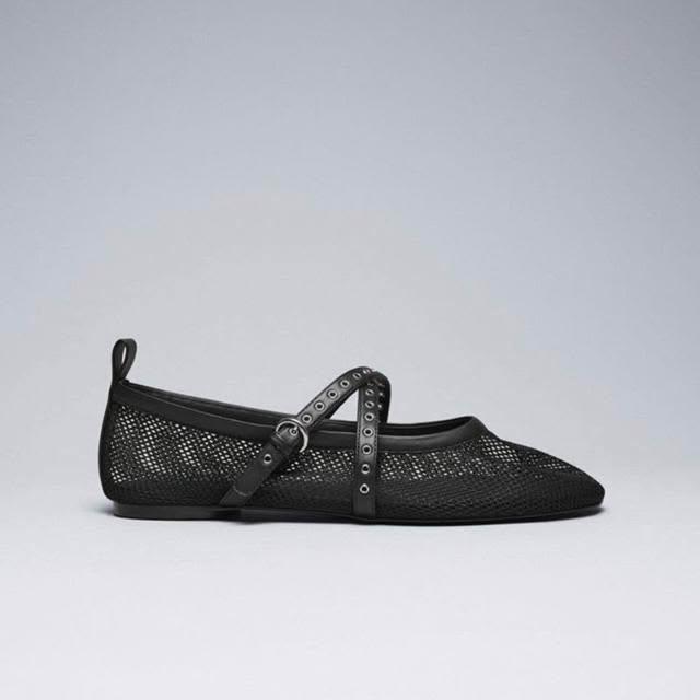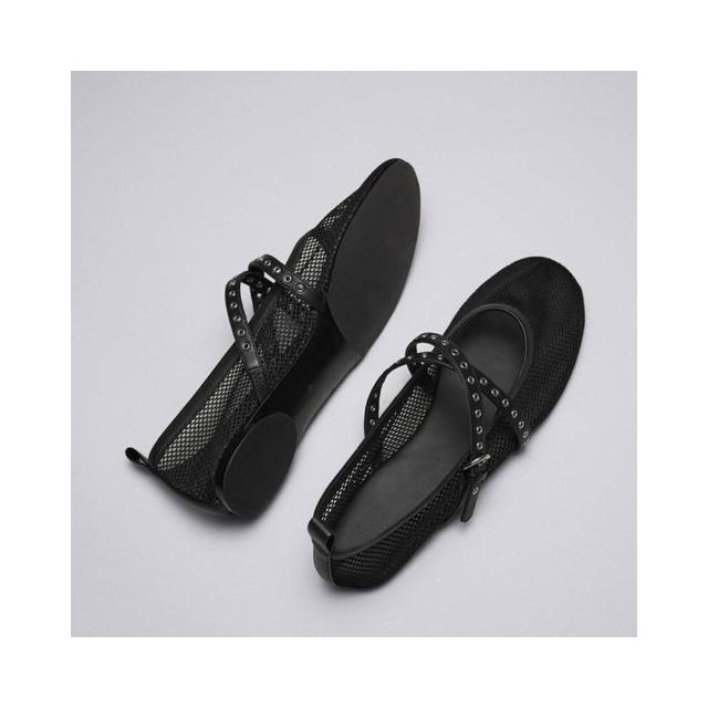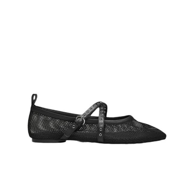 新品 含發票 網眼芭蕾風平底鞋2024春夏新款黑色時尚簡約個性單鞋