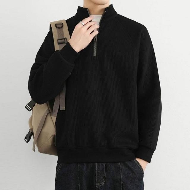 新品 含發票 半拉鏈立領衛衣男士春秋季美式復古寬松純色打底衫外穿休閑外套男