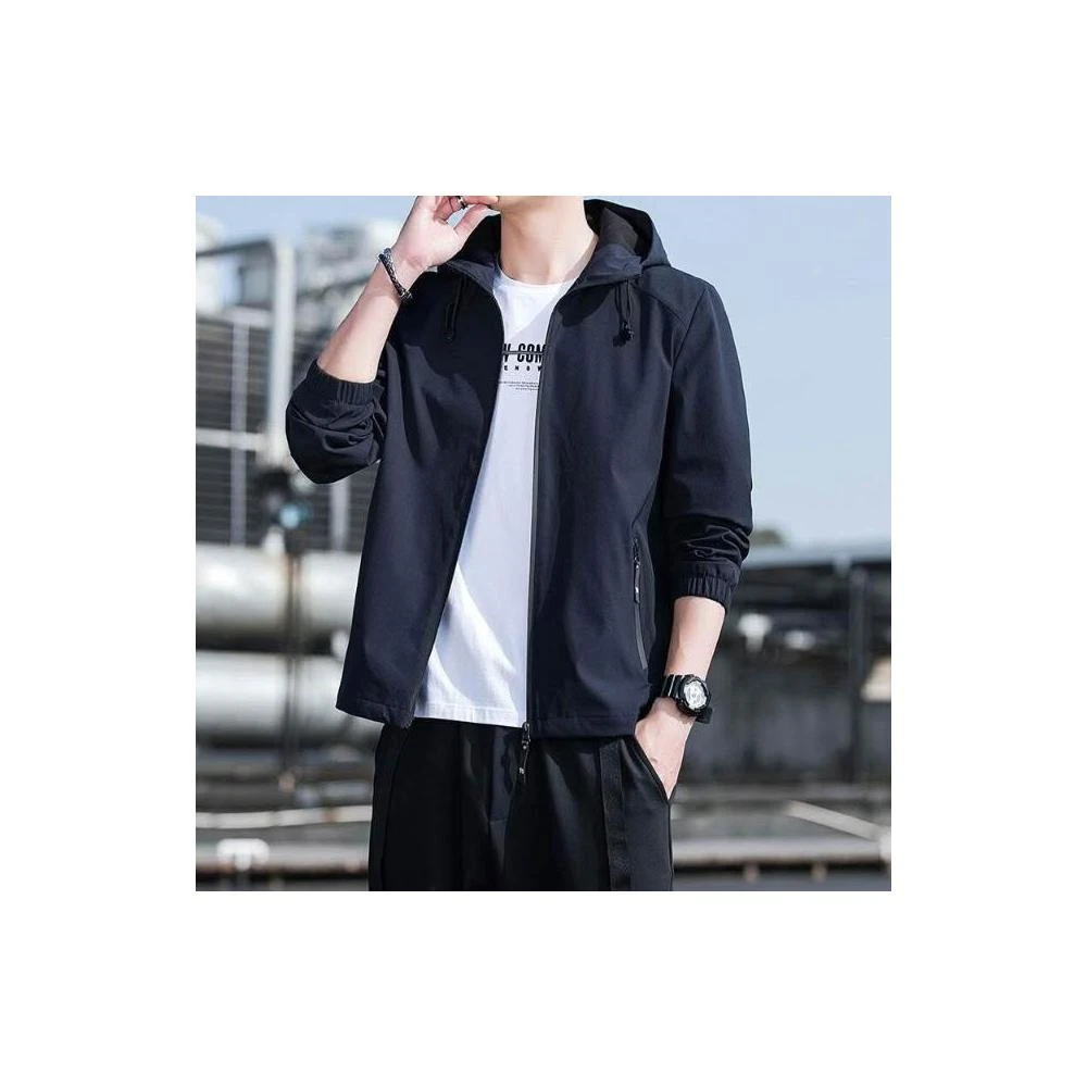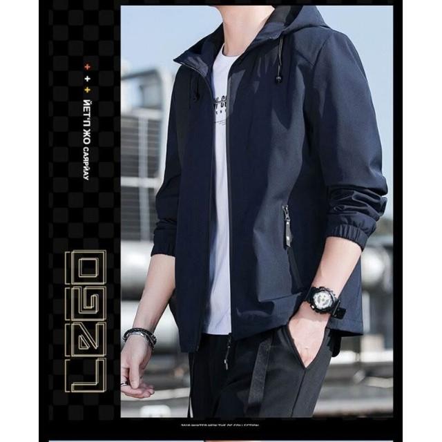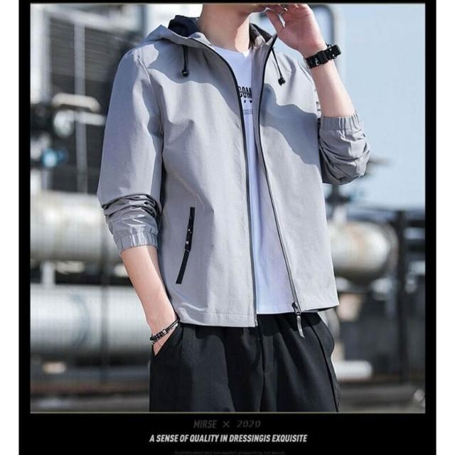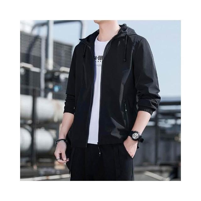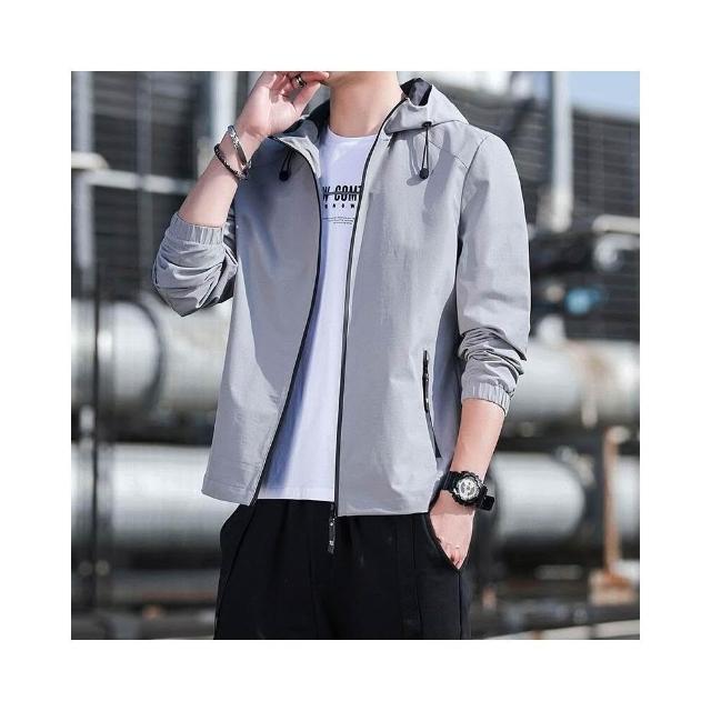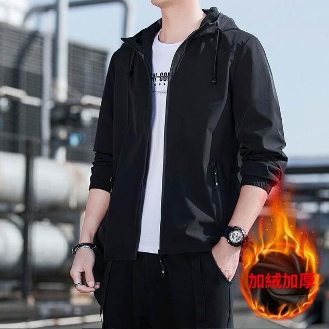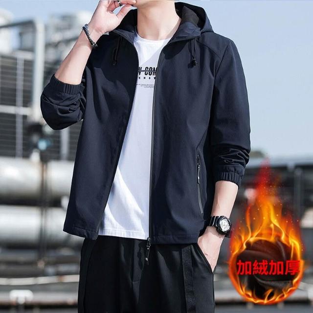 新品 含發票 夾克男士春秋季新款連帽外套薄款沖鋒衣運動休閑時尚潮流夾克衫
