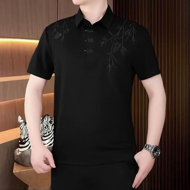 新品 含發票 時尚青年男裝休閑T恤國風新中式領刺繡日常通勤款