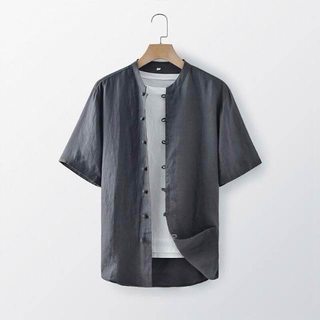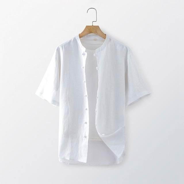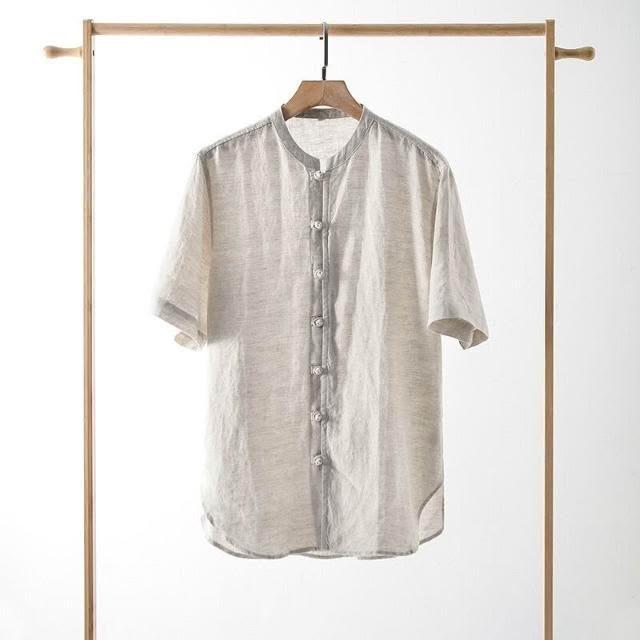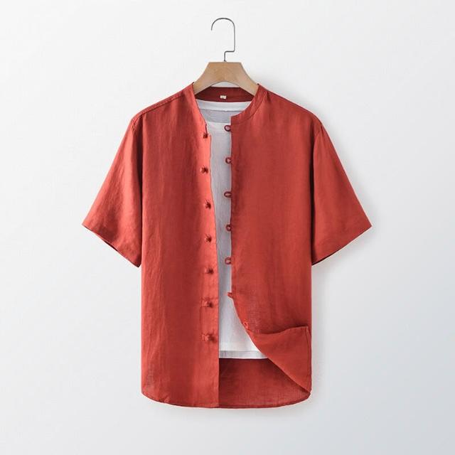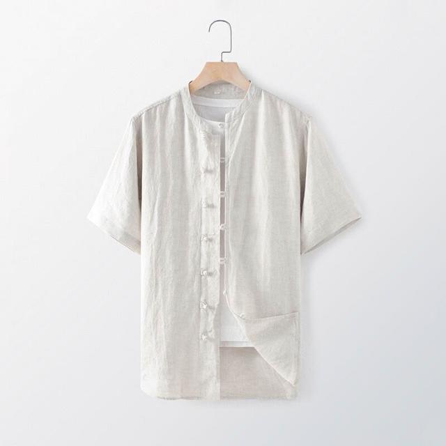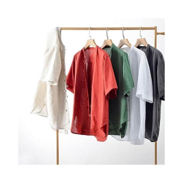 新品 含發票 2025夏季亞麻男裝中式盤扣亞麻襯衫休閑寬松立領短袖上衣E003T