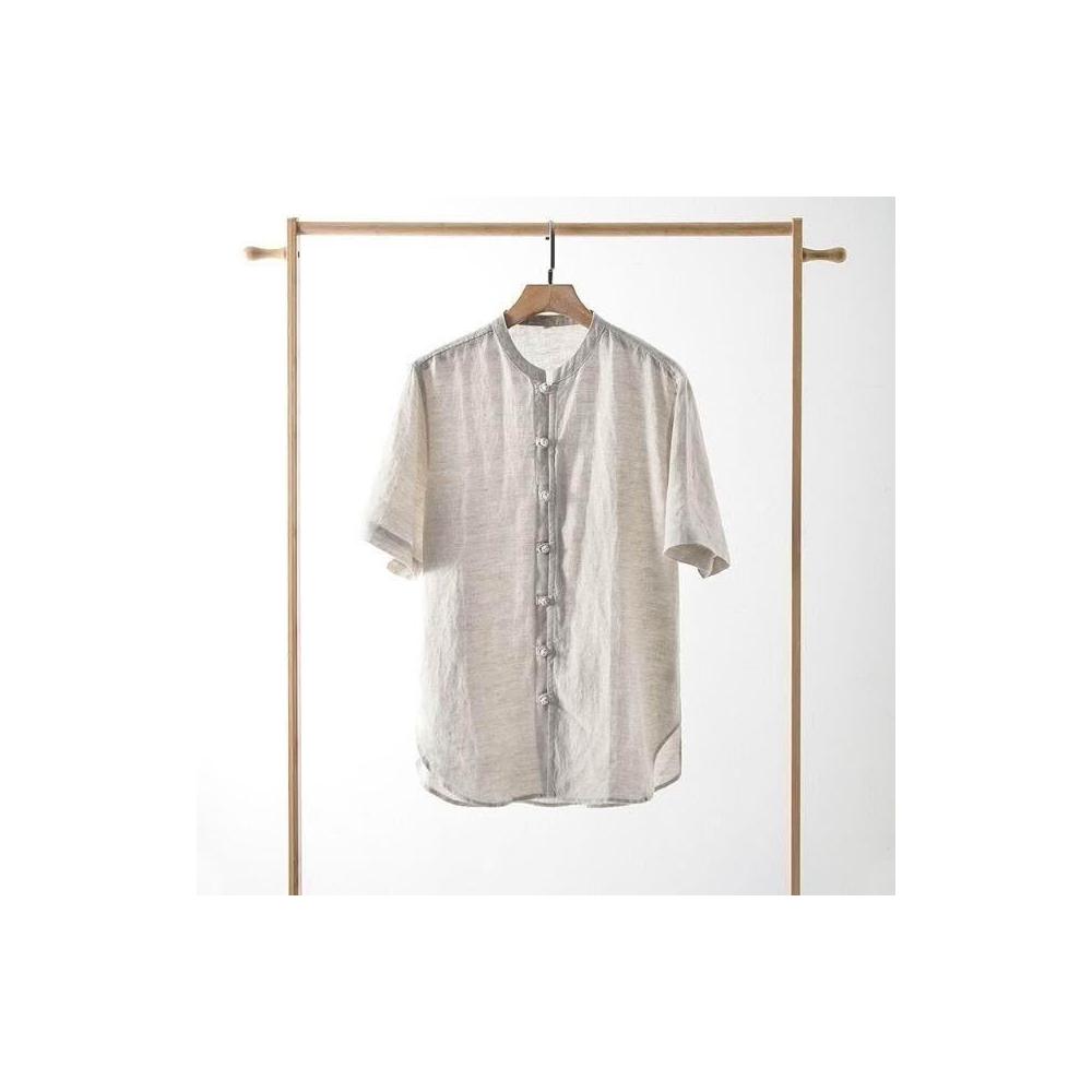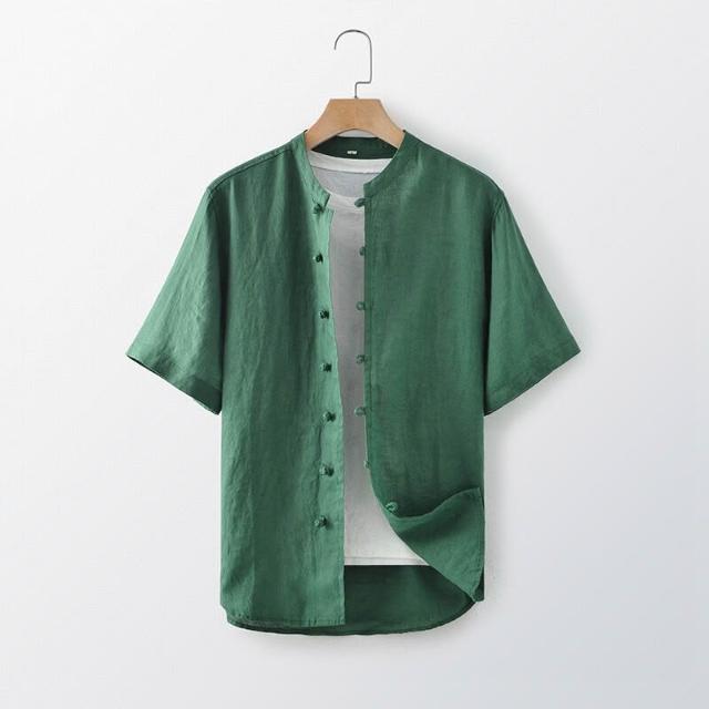 新品 含發票 2025夏季亞麻男裝中式盤扣亞麻襯衫休閑寬松立領短袖上衣E003T