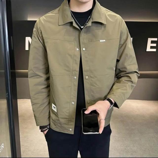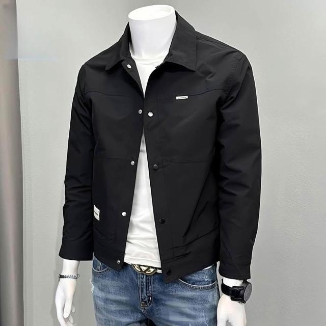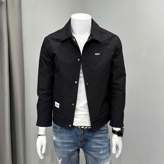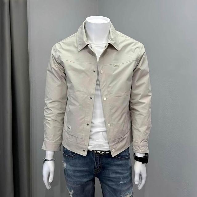 新品 含發票 2025春季新款男士夾克秋季工裝運動翻領上衣服純色寬松休閑外套