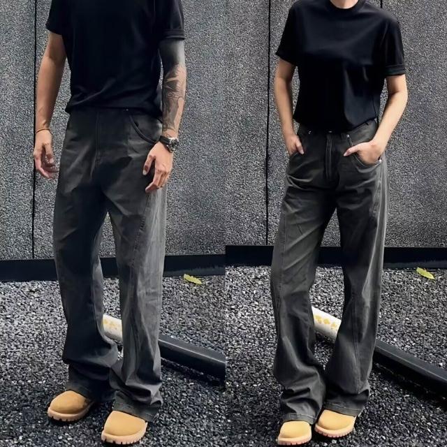 新品 含發票 深灰色vibe褲子男春秋款美式復古牛仔褲修身高街休閑直筒工裝長褲