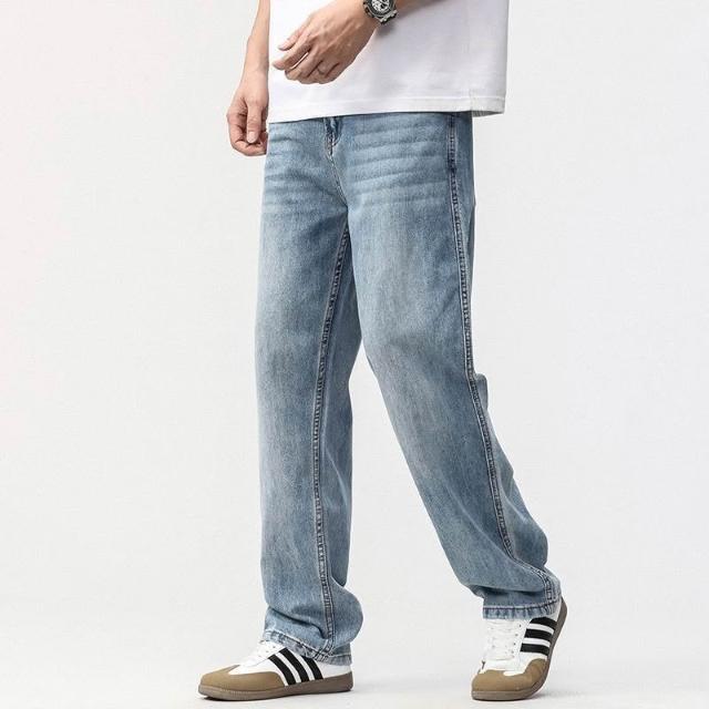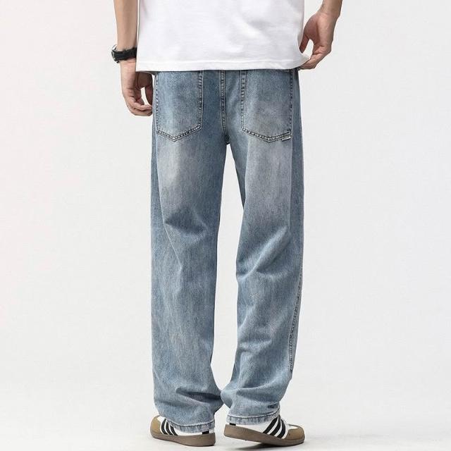 新品 含發票 春季簡約潮流新款牛仔褲男寬松直筒淺藍色休閑時尚百搭長褲子男生