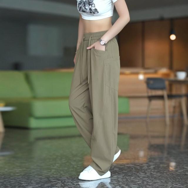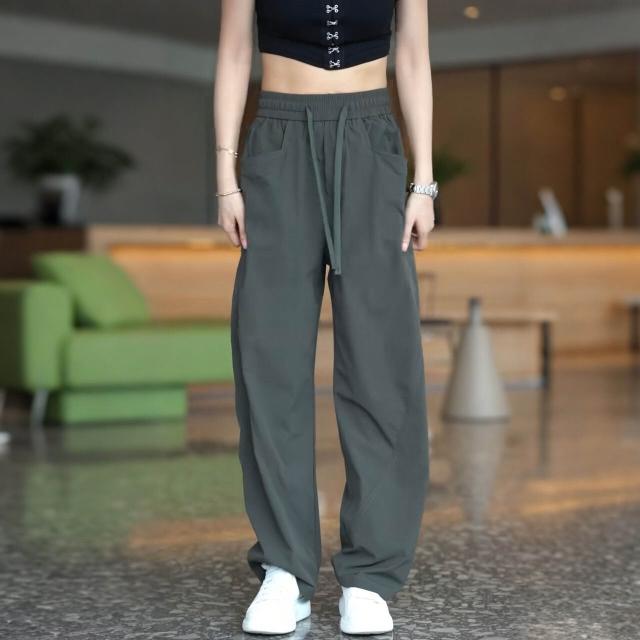 新品 含發票 美式斜切彎刀休閑褲男士時尚潮流寬松舒適透氣松緊腰闊腿運動褲