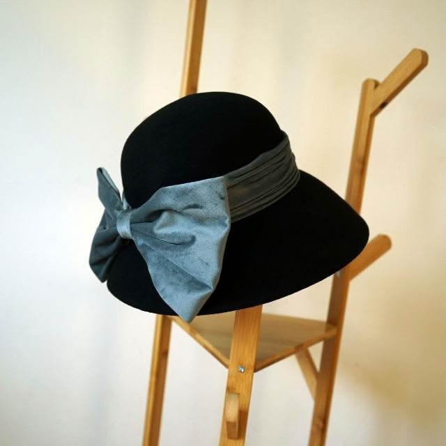 新品 含發票 法式復古鐘形蝴蝶結黑色羊毛呢盆帽女秋冬赫本優雅英倫百搭氈禮帽