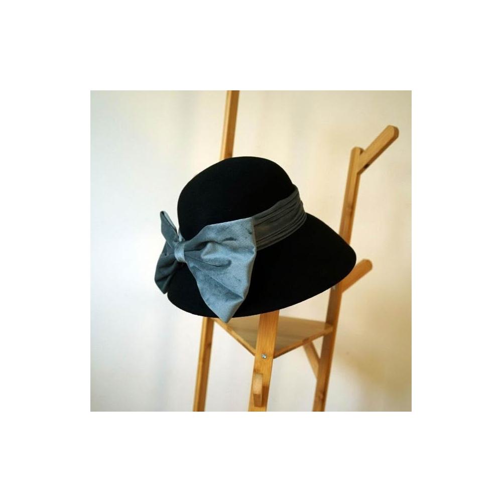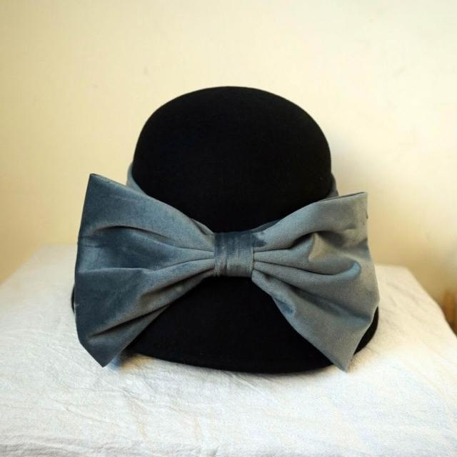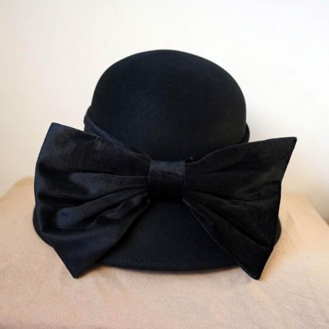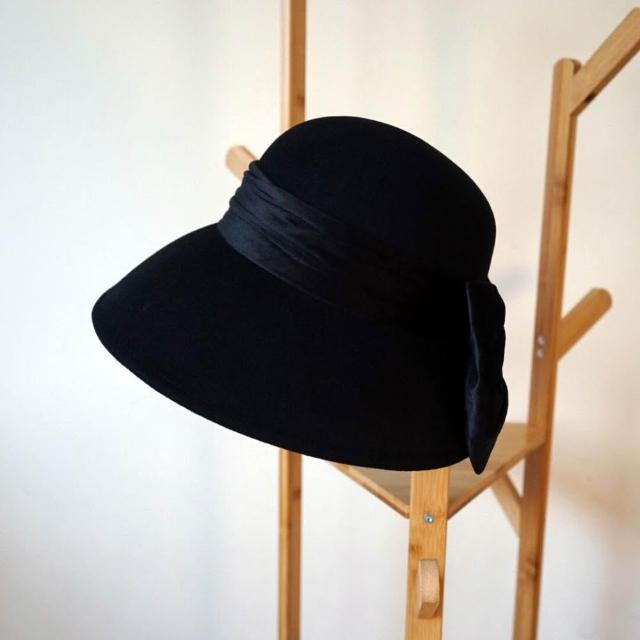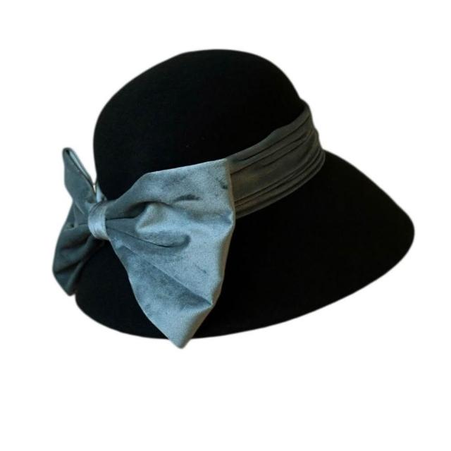 新品 含發票 法式復古鐘形蝴蝶結黑色羊毛呢盆帽女秋冬赫本優雅英倫百搭氈禮帽