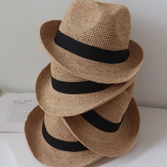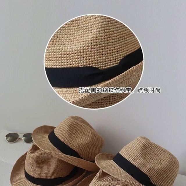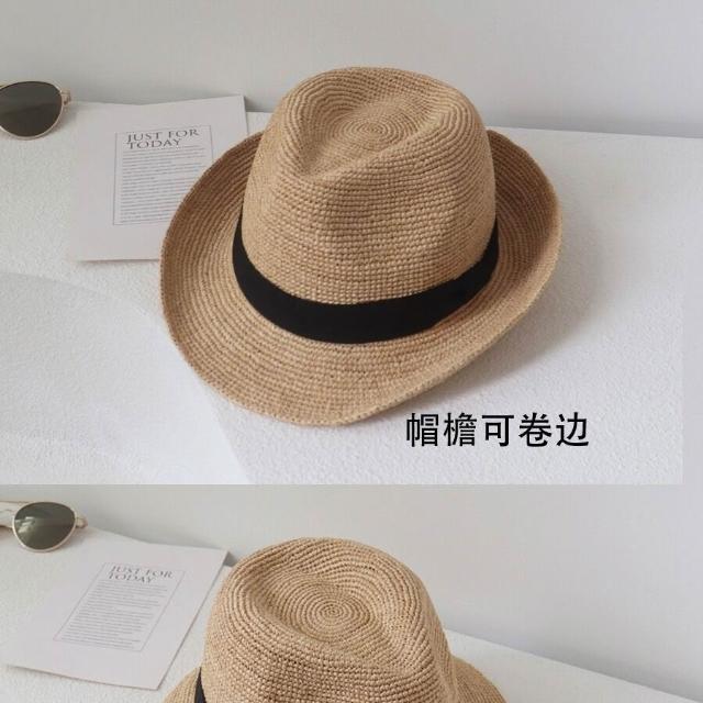 新品 含發票 拉菲草帽男春夏卷邊禮帽英倫爵士帽海邊沙灘帽復古草編遮陽帽女