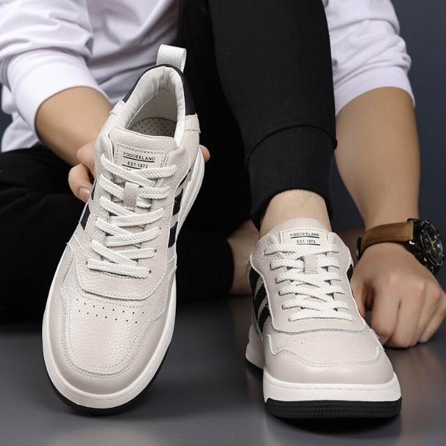 新品 含發票 頭層牛皮新款高幫男鞋真皮男士休閑鞋運動小白鞋透氣時尚男款男鞋