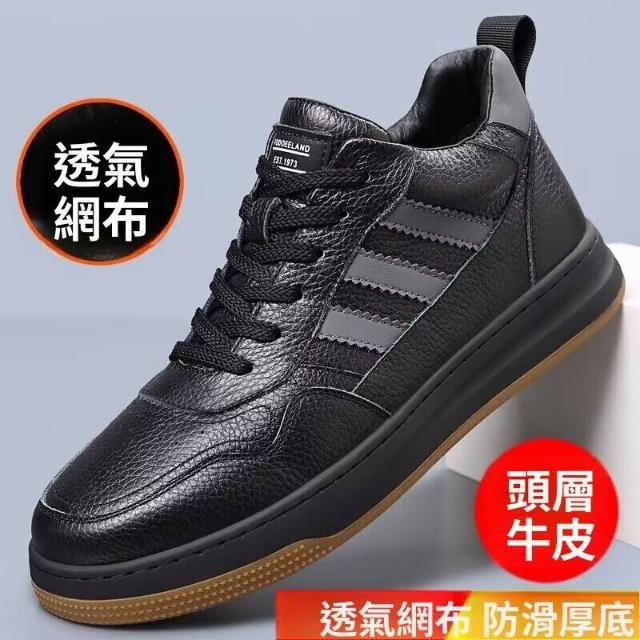 新品 含發票 頭層牛皮新款高幫男鞋真皮男士休閑鞋運動小白鞋透氣時尚男款男鞋