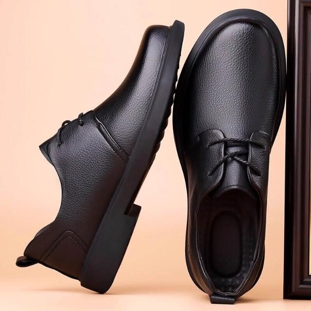 新品 含發票 皮鞋男2025新款春秋季真皮透氣男士休閑鞋軟底軟面商務正裝爸爸鞋