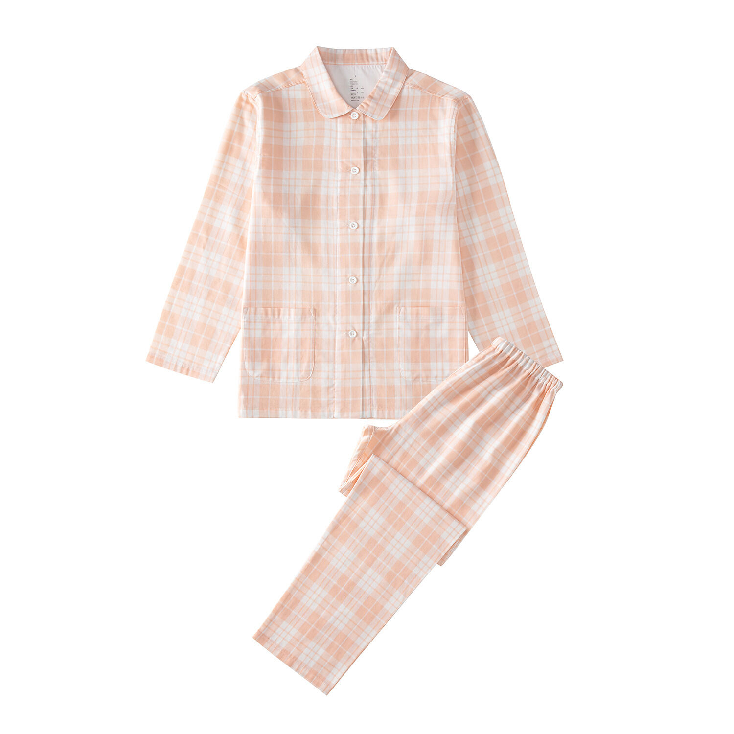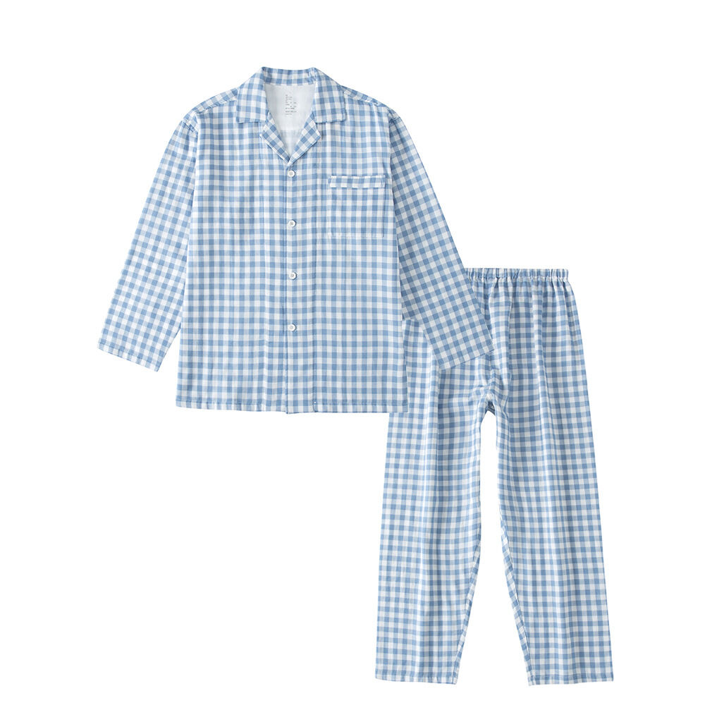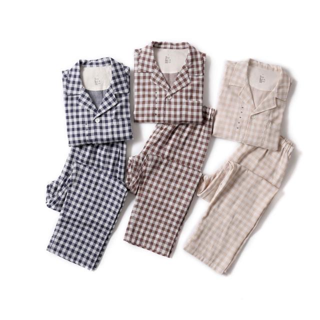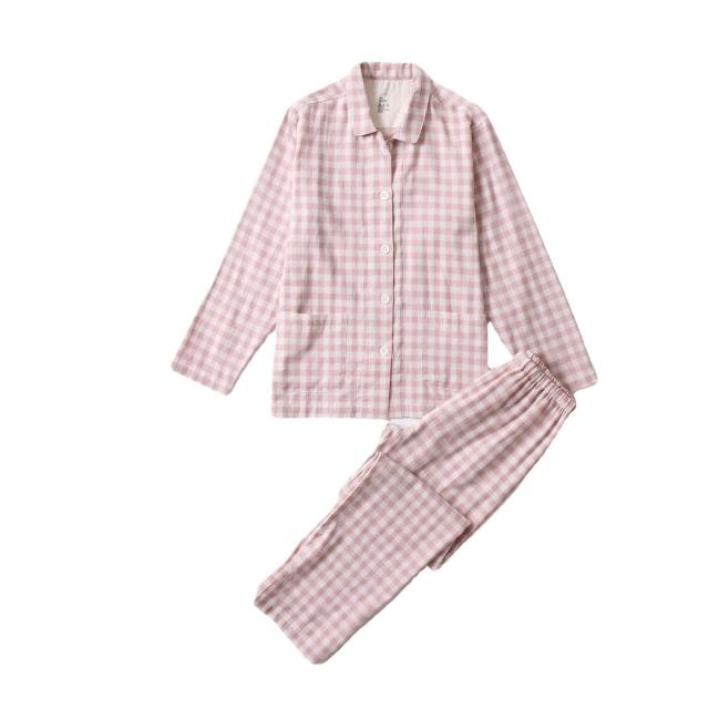 新品 含發票 純棉長褲日式風家居服男士全棉長袖女士長款秋季雙層紗睡衣情侶