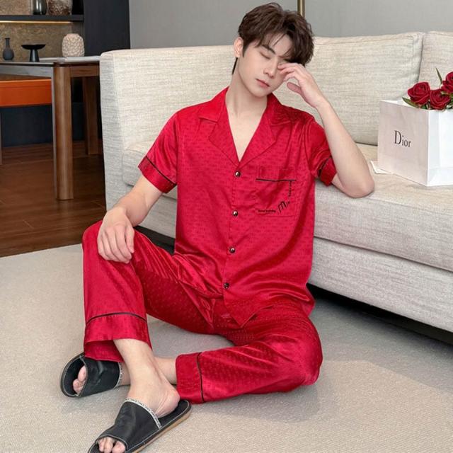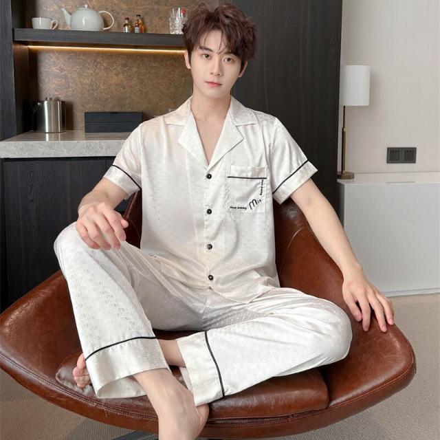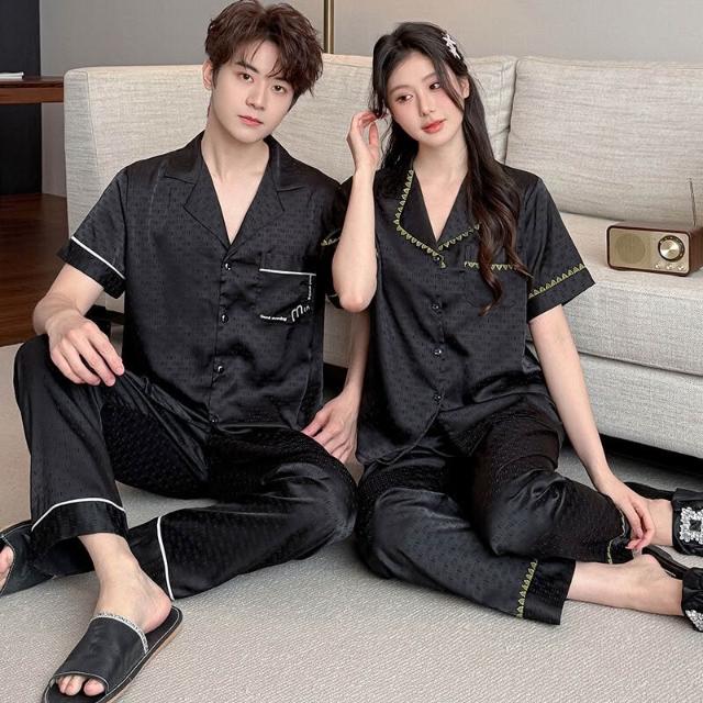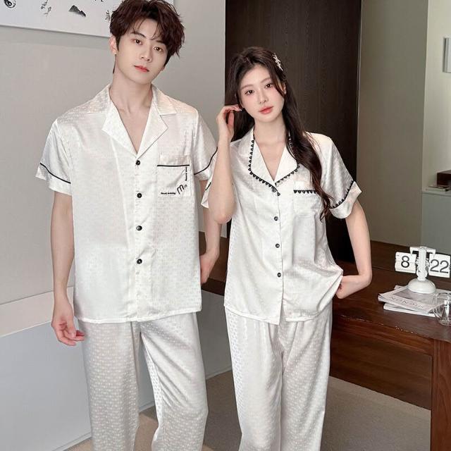 新品 含發票 2026新款冰絲情侶睡衣短袖長褲高級感薄款簡約翻領家居服可外穿