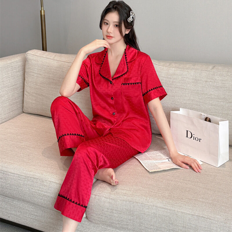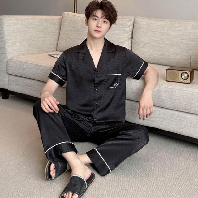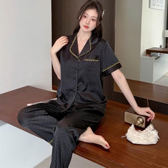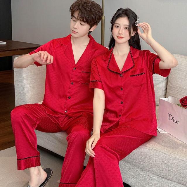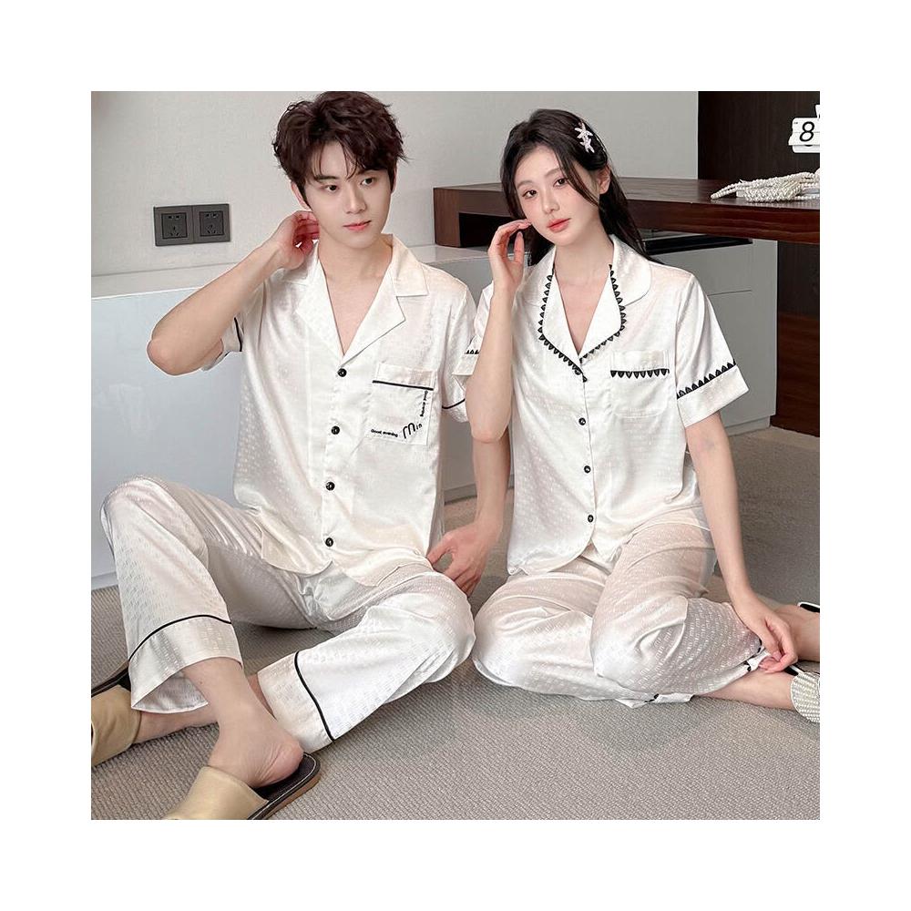 新品 含發票 2026新款冰絲情侶睡衣短袖長褲高級感薄款簡約翻領家居服可外穿