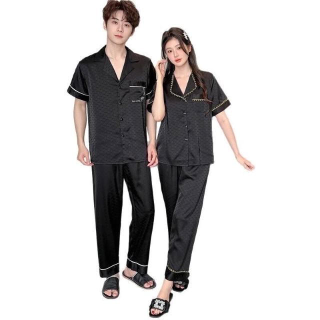 新品 含發票 2026新款冰絲情侶睡衣短袖長褲高級感薄款簡約翻領家居服可外穿
