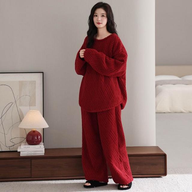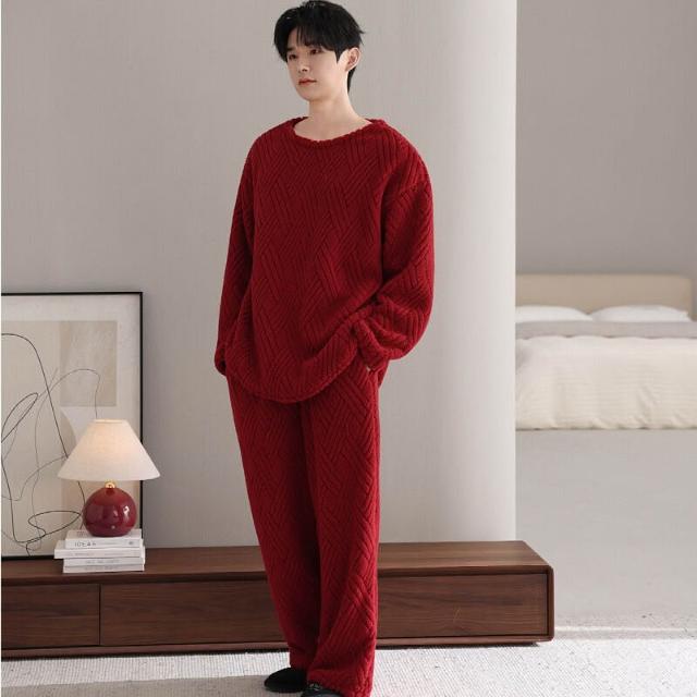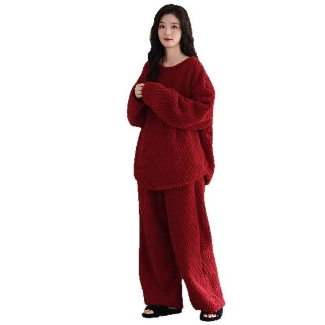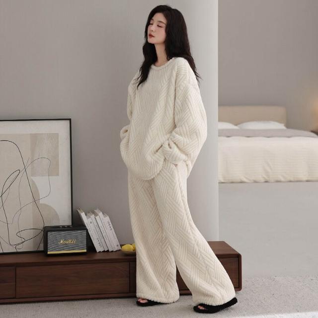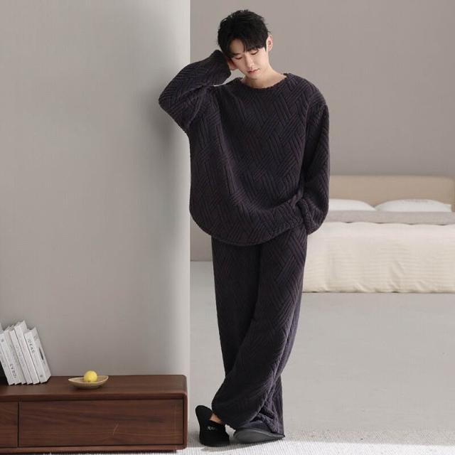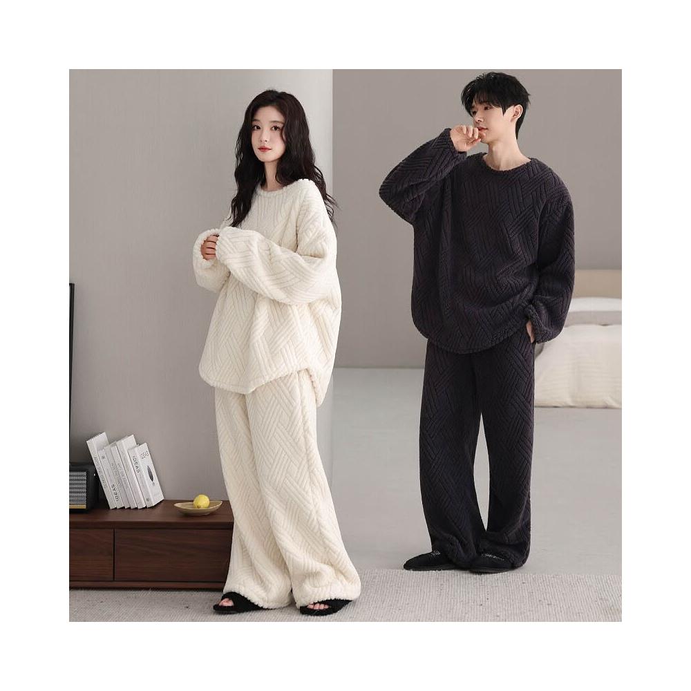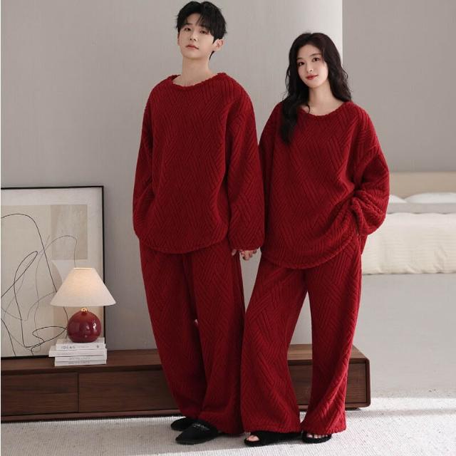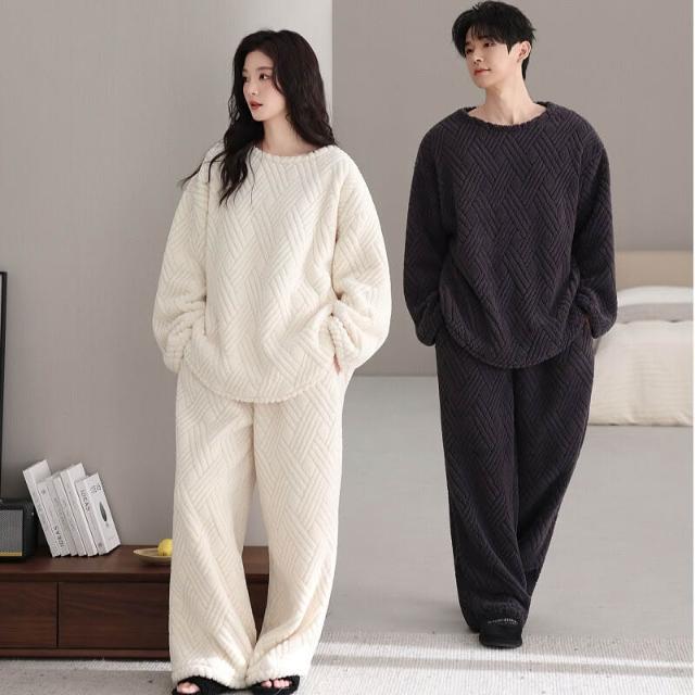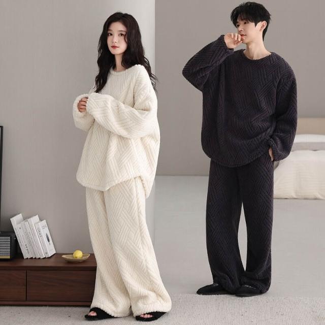 新品 含發票 情侶珊瑚絨睡衣女秋冬季寬松圓領加絨男女生保暖家居服套裝新款