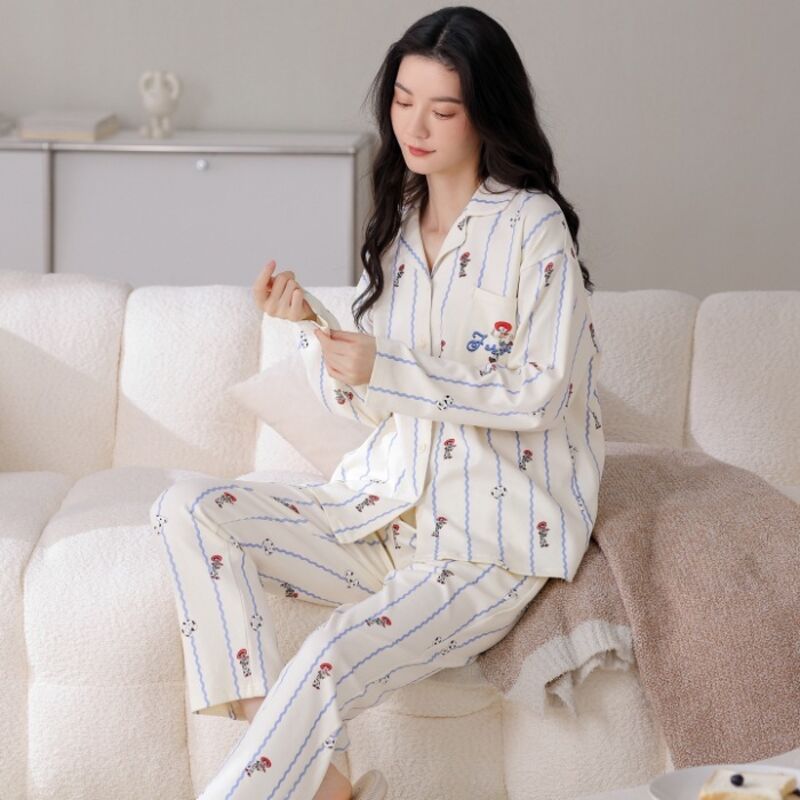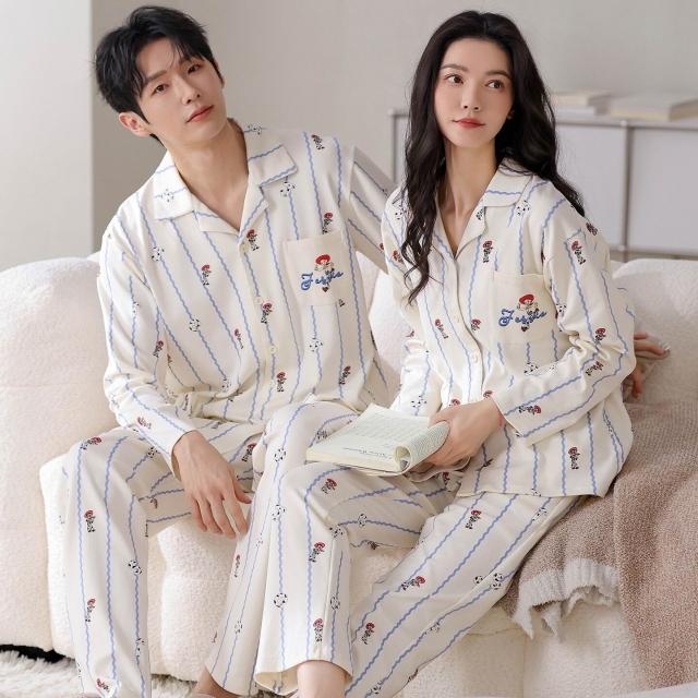 新品 含發票 實體批發現貨純棉睡衣女長袖長褲男士休閑甜美卡通情侶家居服套裝