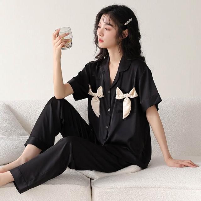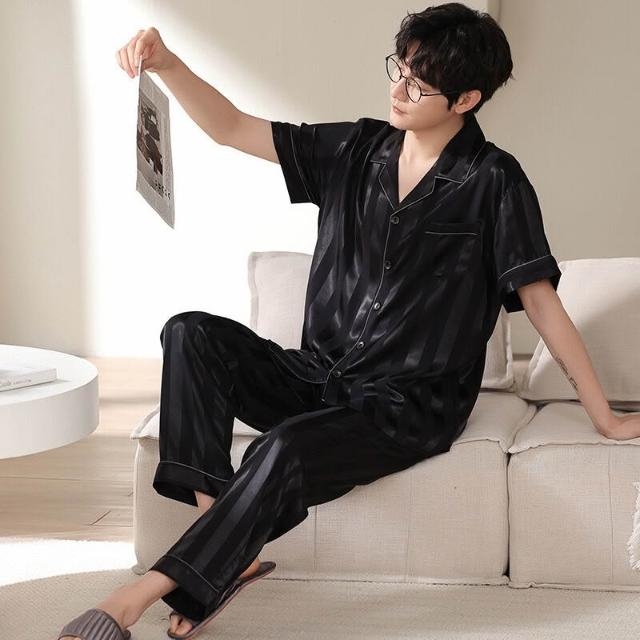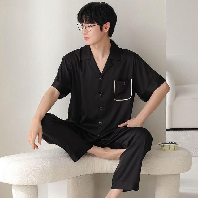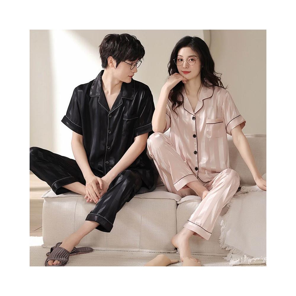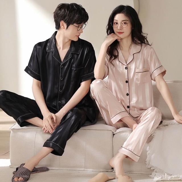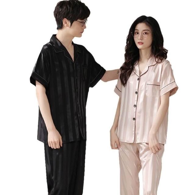 新品 含發票 冰絲睡衣情侶男女士夏季2025年新款短袖長褲夏天高級感家居服套裝