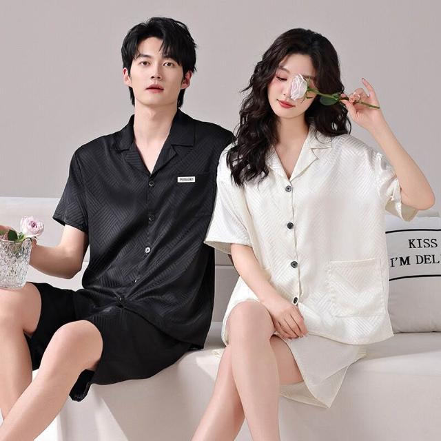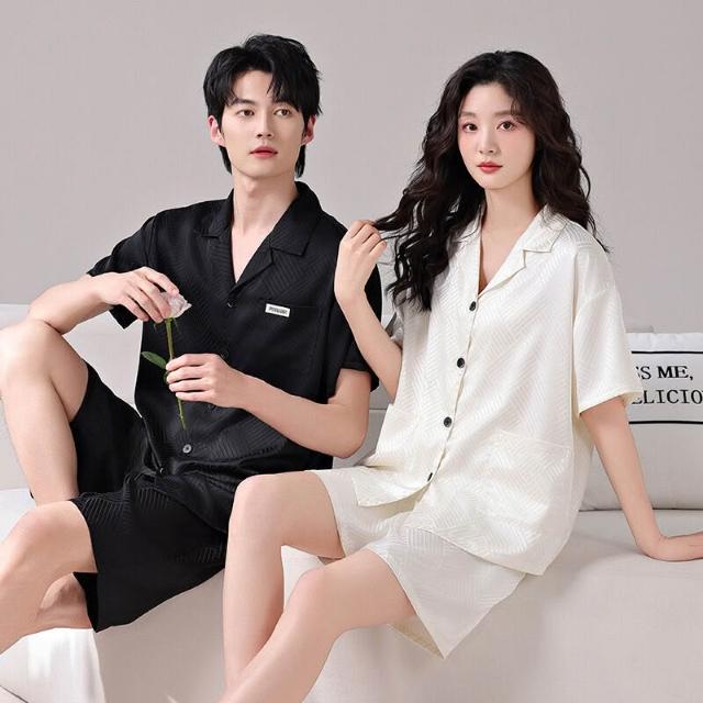 新品 含發票 情侶睡衣夏季冰絲涼感短袖套裝男女休閑可外穿2025新款夏天家居服