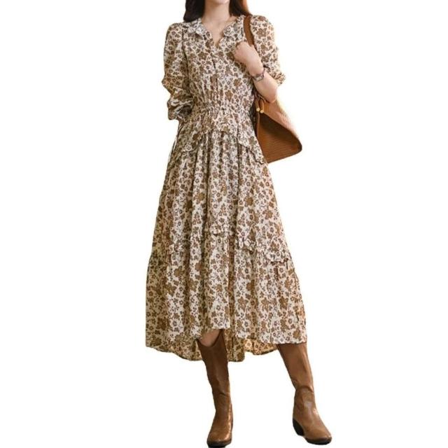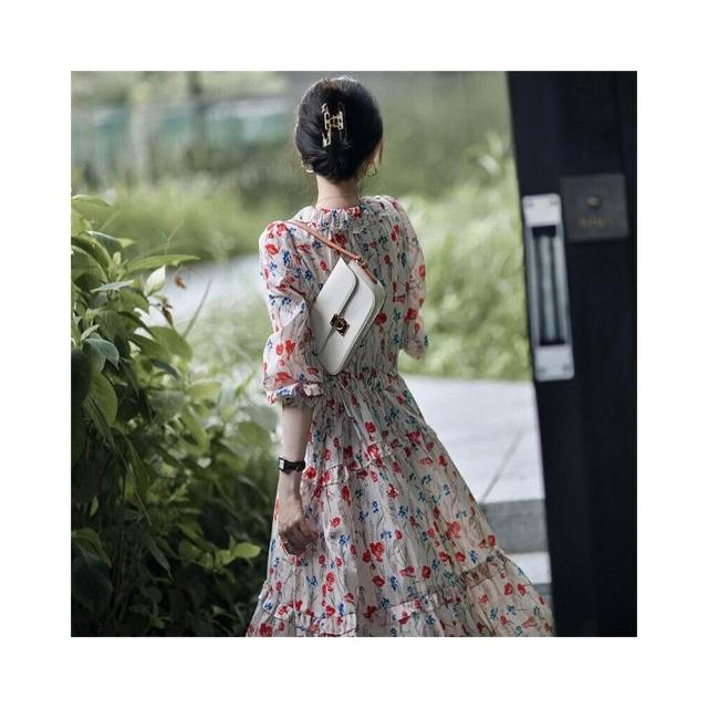 新品 含發票 2026春夏新款法式復古茶歇仙女減齡長裙氣質收腰顯瘦碎花連衣裙子