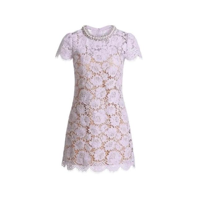 新品 含發票 2025年夏季新款女裝紫色花朵蕾絲短袖圓領連衣裙短款MIU系小洋裝