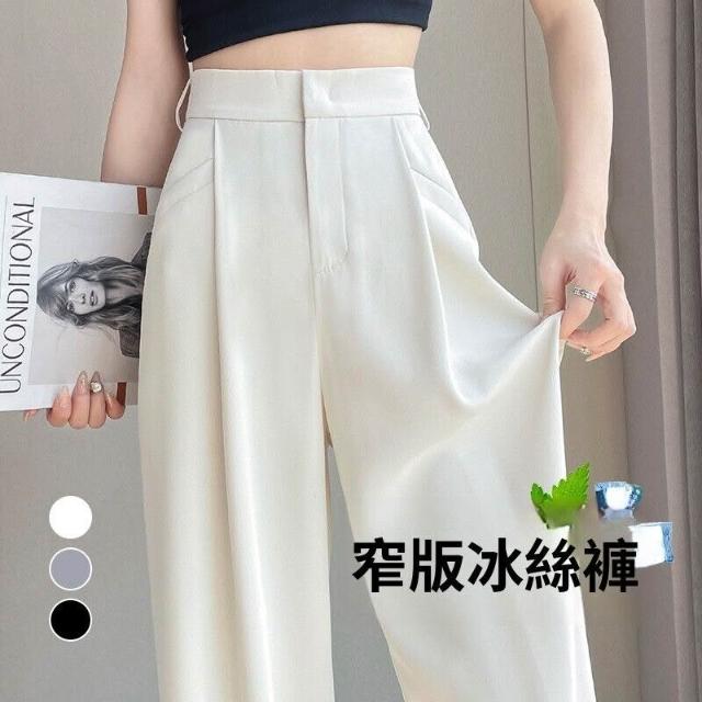 新品 含發票 拉夏貝爾白色冰絲西裝闊腿褲女2026新款春夏薄款高腰垂感窄版褲子