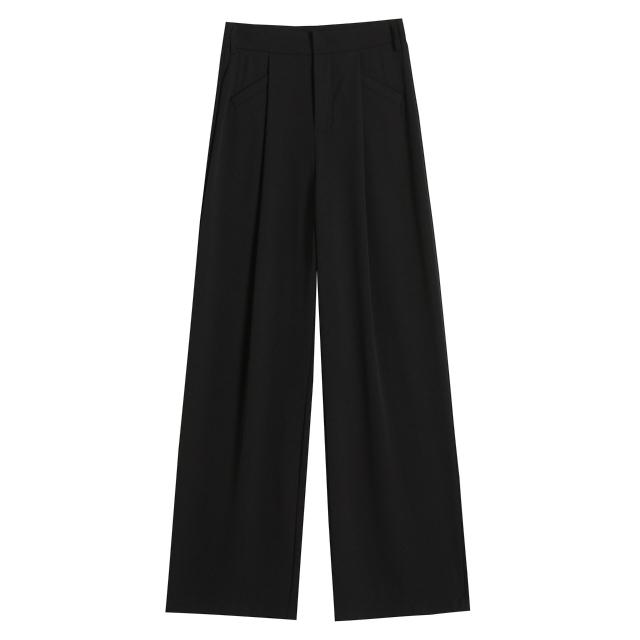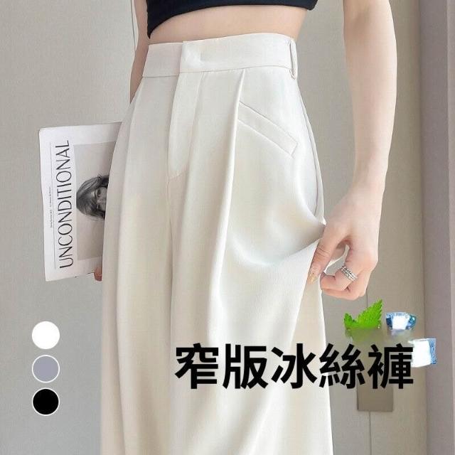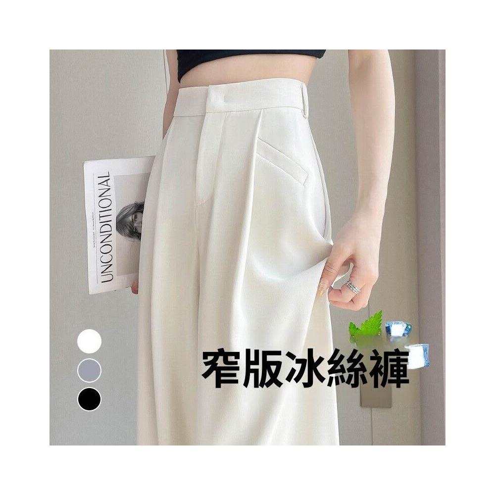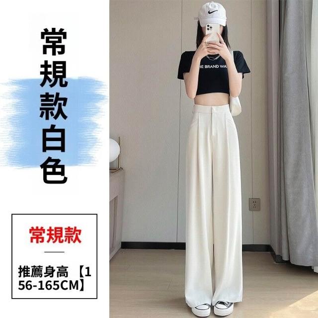 新品 含發票 拉夏貝爾白色冰絲西裝闊腿褲女2026新款春夏薄款高腰垂感窄版褲子