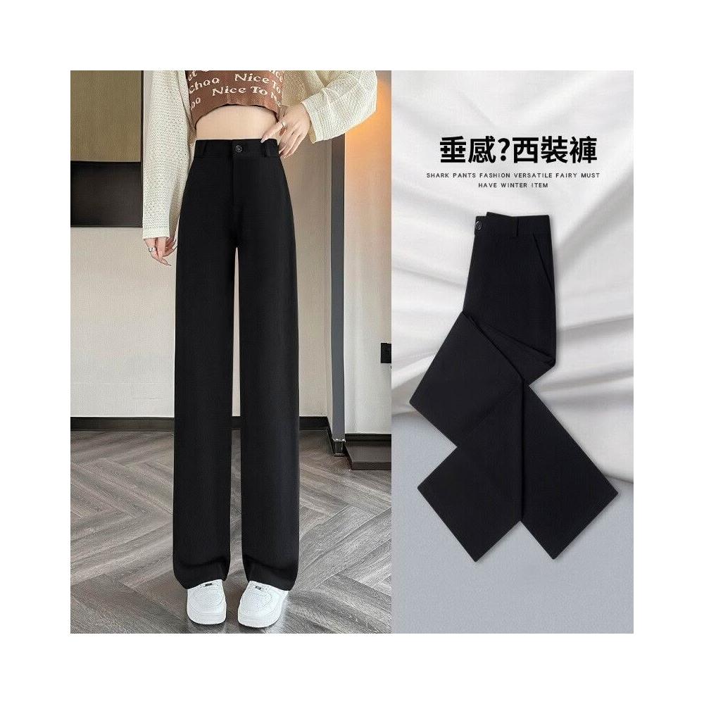 新品 含發票 西裝褲女2026新款春夏高級感垂感小個子高腰闊腿黑色窄版直筒褲子