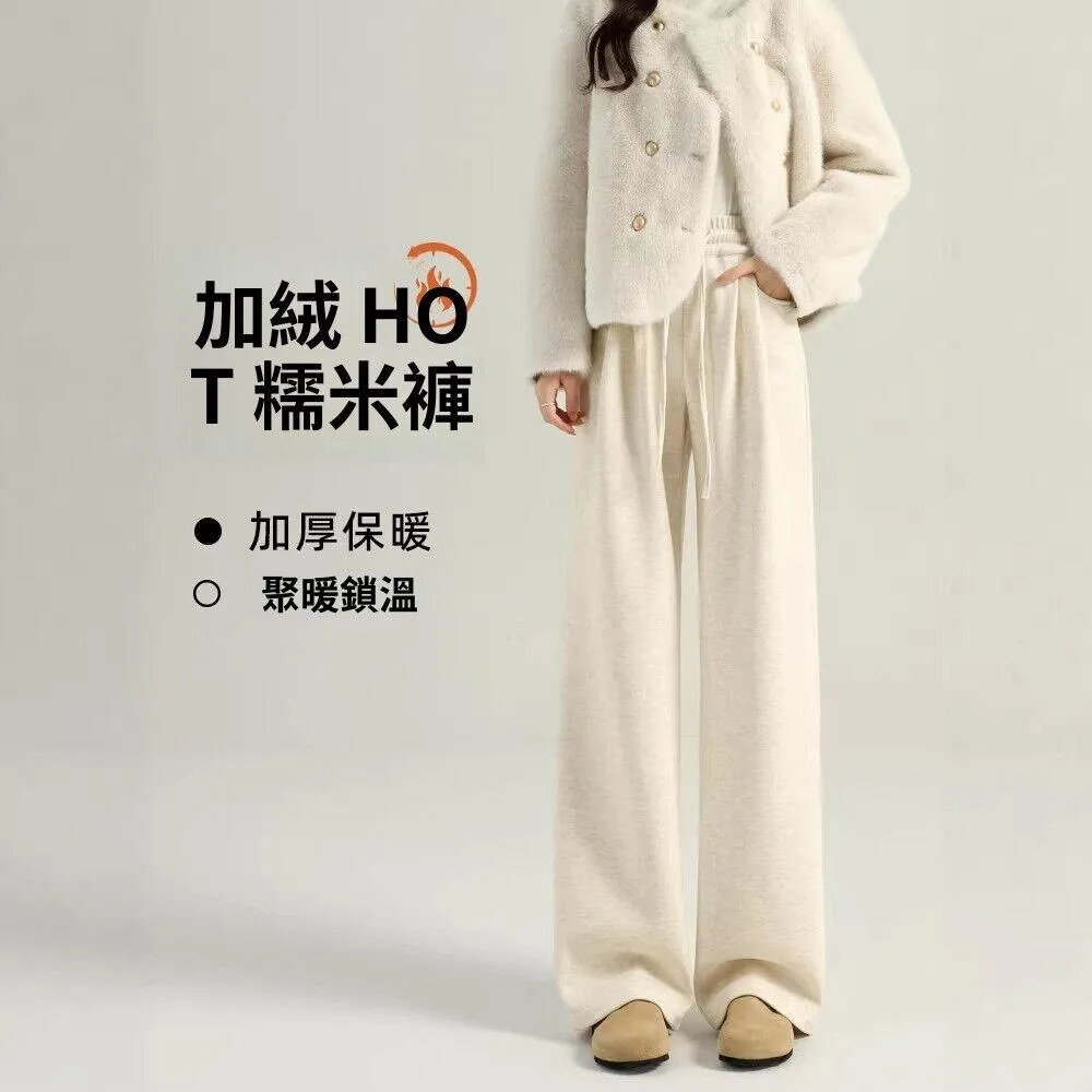 新品 含發票 糯米褲女2026新款春秋高腰垂感闊腿褲寬松慵懶風加厚白色褲子