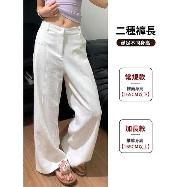 新品 含發票 白色亞麻苎麻闊腿褲女春秋款高腰垂感老錢風直筒棉麻西裝休閑褲