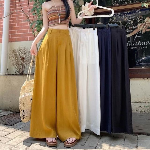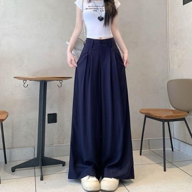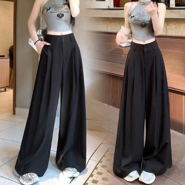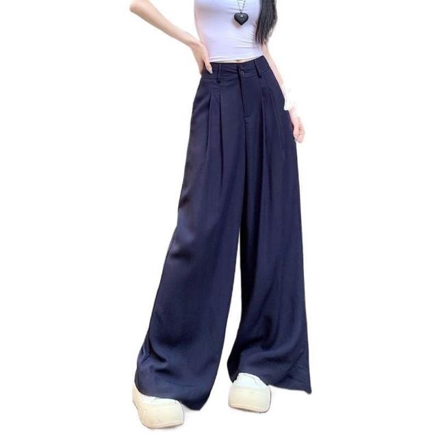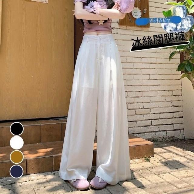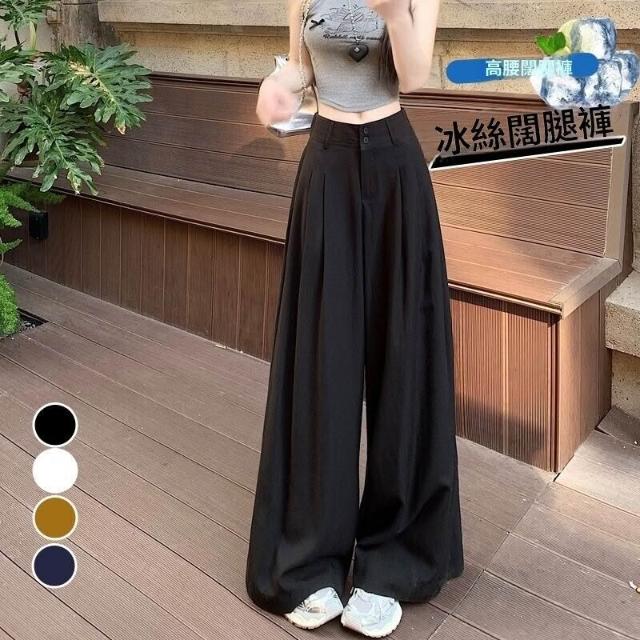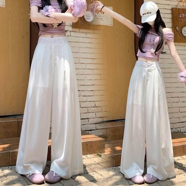 新品 含發票 白色冰絲西裝闊腿褲女夏薄款高腰顯瘦寬松垂感休閑直筒拖地褲