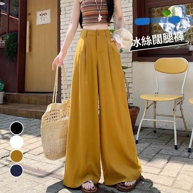 新品 含發票 白色冰絲西裝闊腿褲女夏薄款高腰顯瘦寬松垂感休閑直筒拖地褲