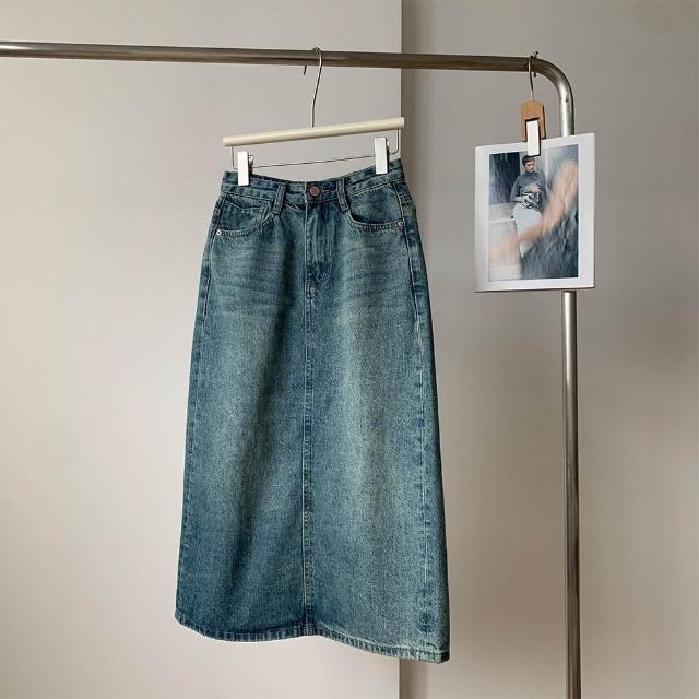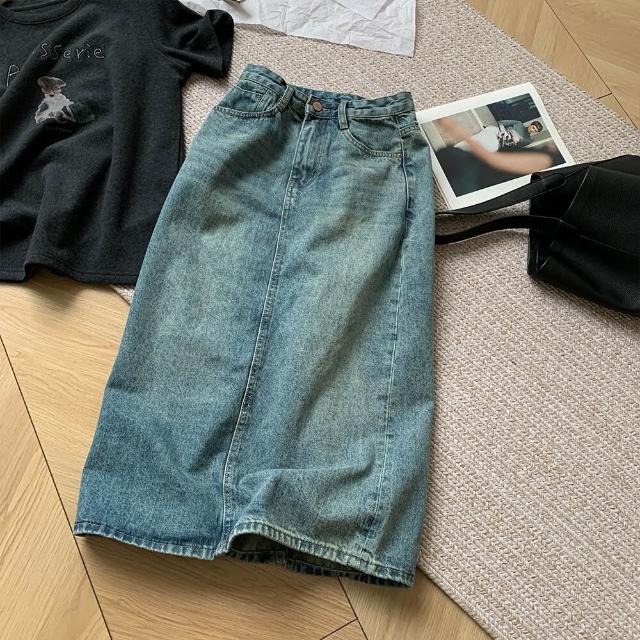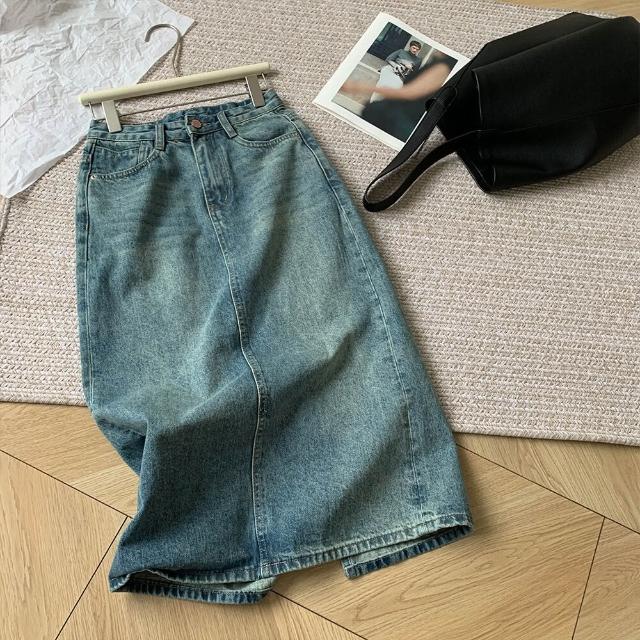 新品 含發票 淺色牛仔半身裙2026早春新款韓系高腰顯瘦百搭a字後開叉中長裙女