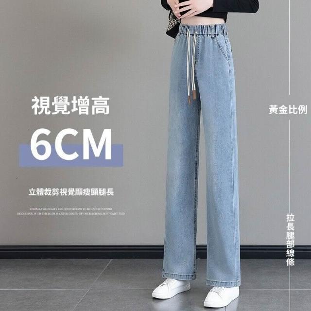 新品 含發票 春秋款上新闊腿直筒褲女裝牛仔長褲松緊腰彈力修身潮流淺色牛仔褲