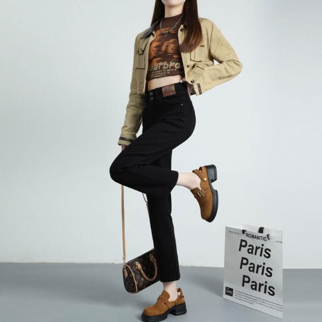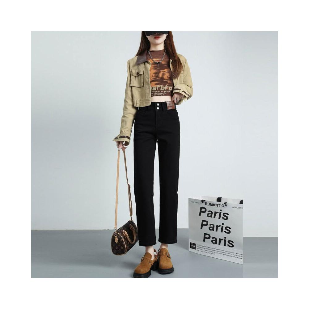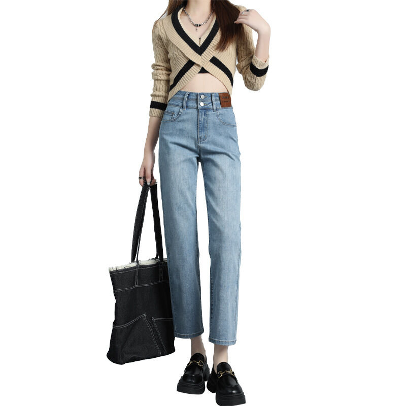 新品 含發票 廠貨通淺色窄版直筒牛仔褲女春秋高腰顯瘦彈力煙管褲九分小個子新