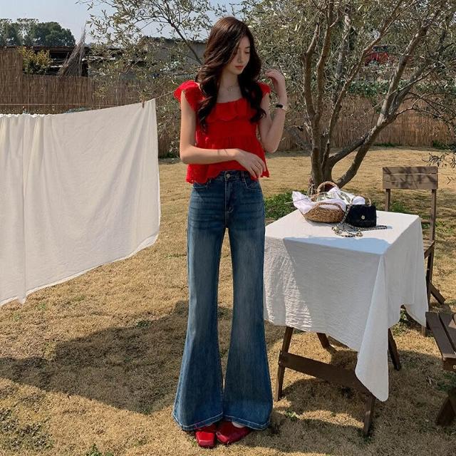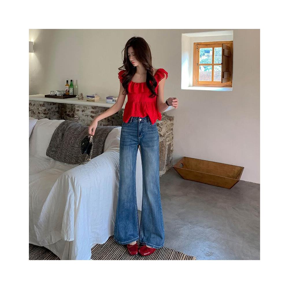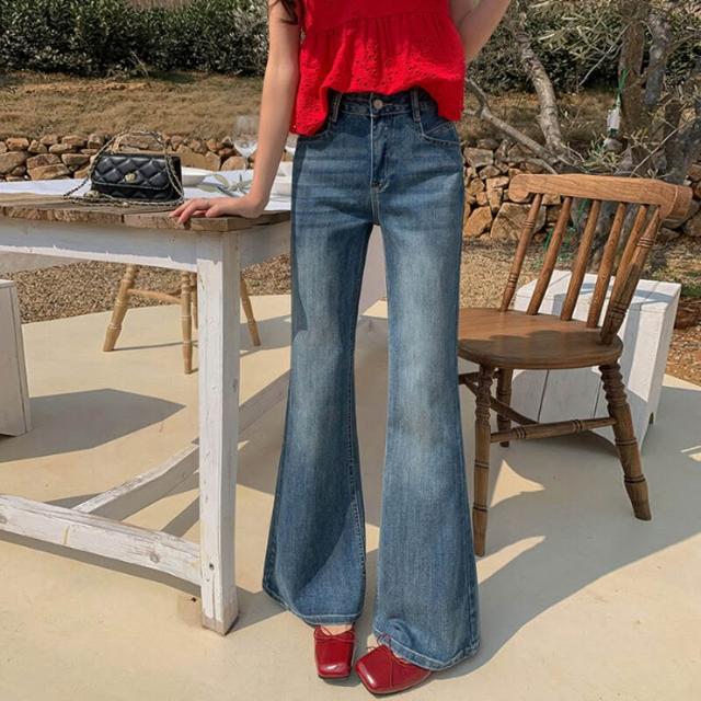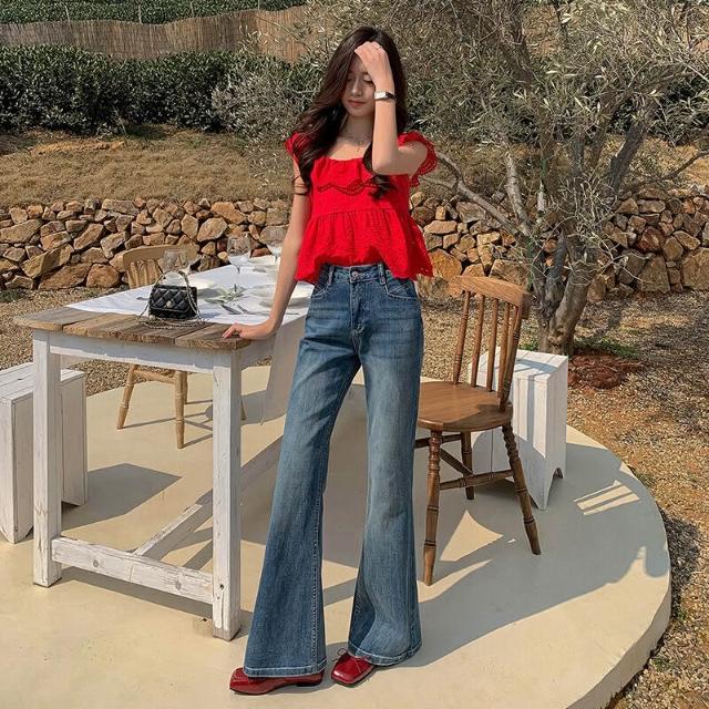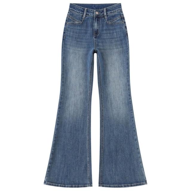 新品 含發票 美式微喇牛仔褲女2026年春季新款高腰顯瘦彈力小個子不貼腿喇叭褲