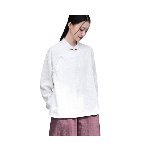 新品 含發票 26春季棉麻女裝新款中式復古手工纏線盤扣上衣女棉麻禅意茶服襯衫