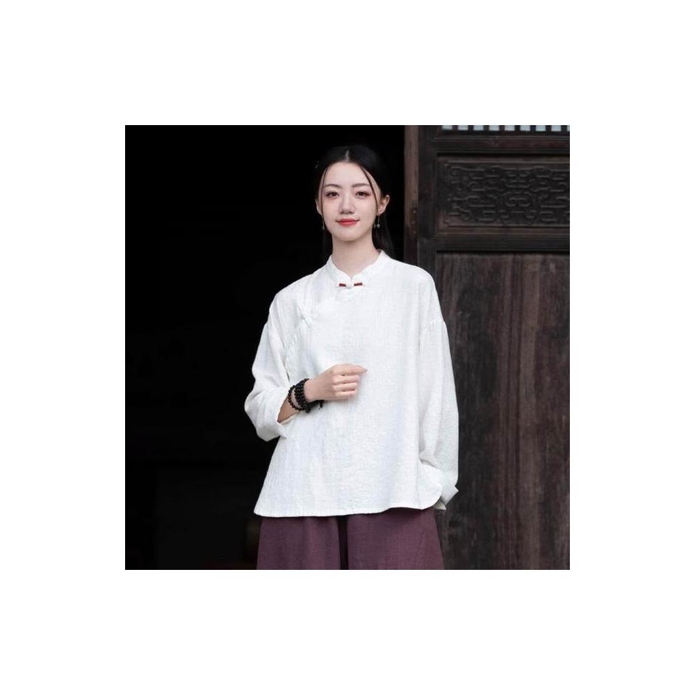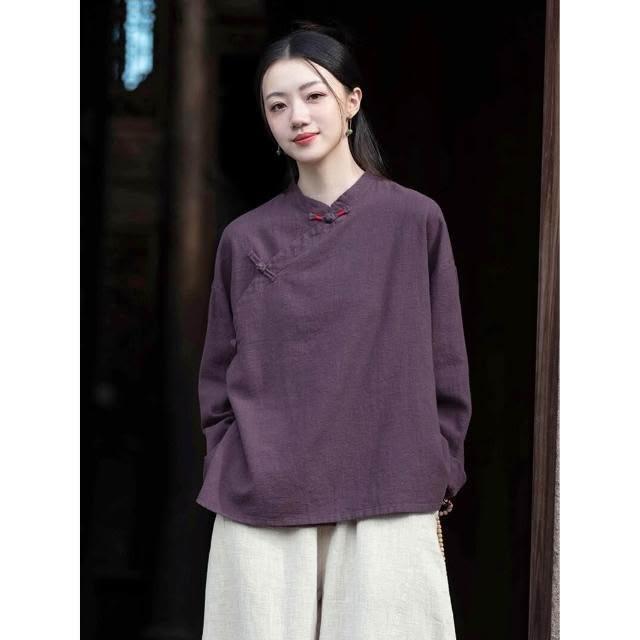 新品 含發票 26春季棉麻女裝新款中式復古手工纏線盤扣上衣女棉麻禅意茶服襯衫
