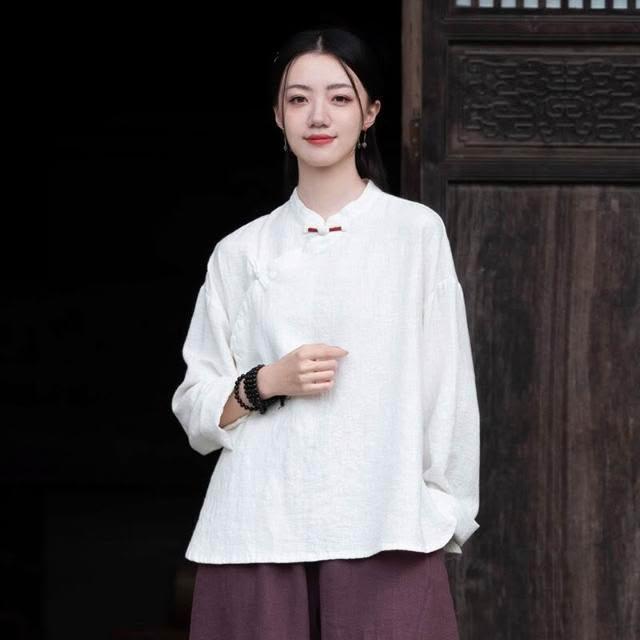 新品 含發票 26春季棉麻女裝新款中式復古手工纏線盤扣上衣女棉麻禅意茶服襯衫