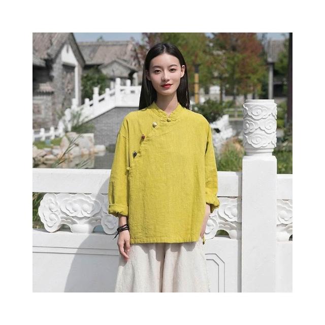 新品 含發票 26春季新中式女裝國風立領偏襟拼色盤扣上衣棉麻禅意茶服女襯衫